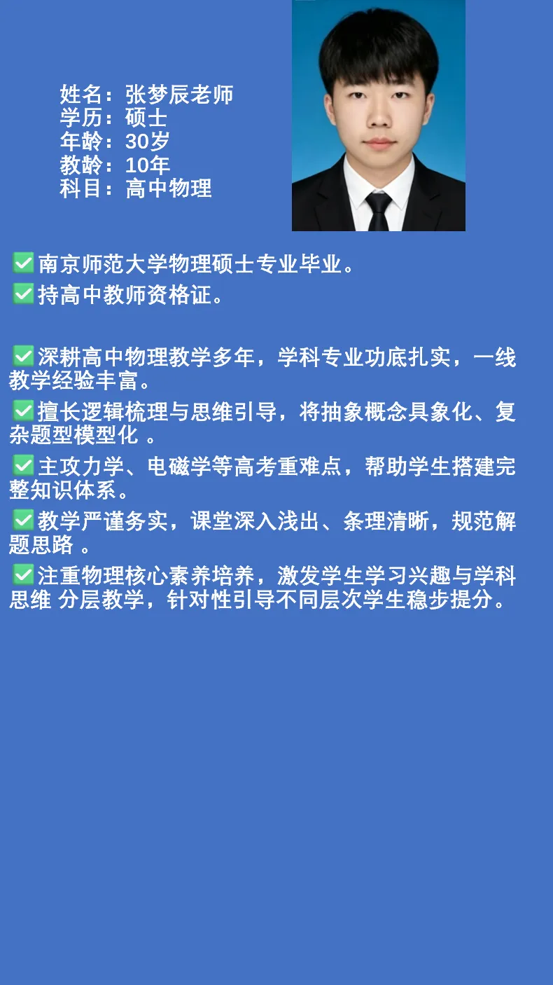 南京师范大学硕士毕业的张梦辰老师带高中物理