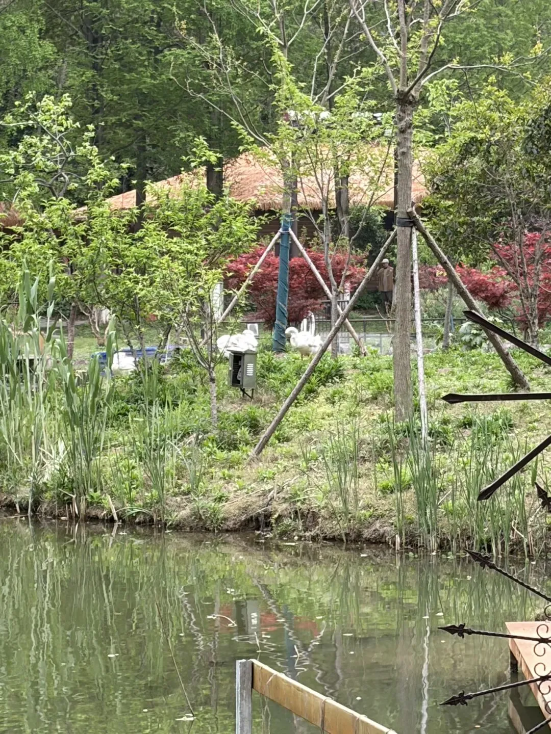 这里的小河塘打造的很有意境,景色非常惬意。水塘中还有一些鸭子、白鹅,乡野情趣满满。
