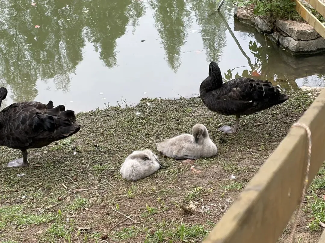 看到了两只黑天鹅,还有它们的孩子——可爱的“丑小鸭”。
