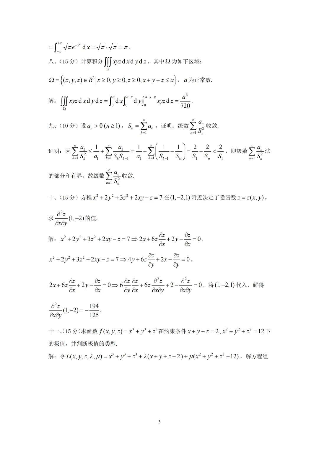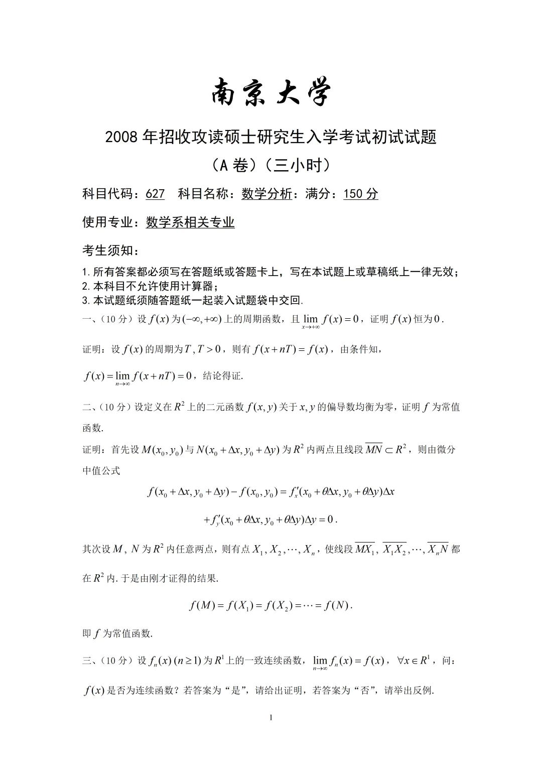 南京大学2008年招收攻读硕士学位研究生入学考试《数学分析》试题及答案,第一题选择题我给出了详细的解答,有助于同学们对每一个概念有一个准确的认识,不但知其然,而且知其所以然,对一致连续性,无穷大量、函数的改变量、级数的收敛与绝对收敛。第二题填空题,给出了为什么填这个值的理由,写出了详细的推导过程,第三题证明题等等,总的来说,我们对每个题目都做了详尽的解答,以便让同学们一看就明白,容易掌握这个知识点,对复习考研是很有好处的,以后我会对北京交通大学的题目逐一给出解答,对这个学校有报考意向的同学,可以下载参考,希望对同学们有所帮助,做真题前,好好复习课本是很有必要的,课本要反复的看,题要反复的做,日积月累,终会有所收获的,数学的学习很辛苦,同学们只要坚持去学,不会多问,一定能够达到目的.
