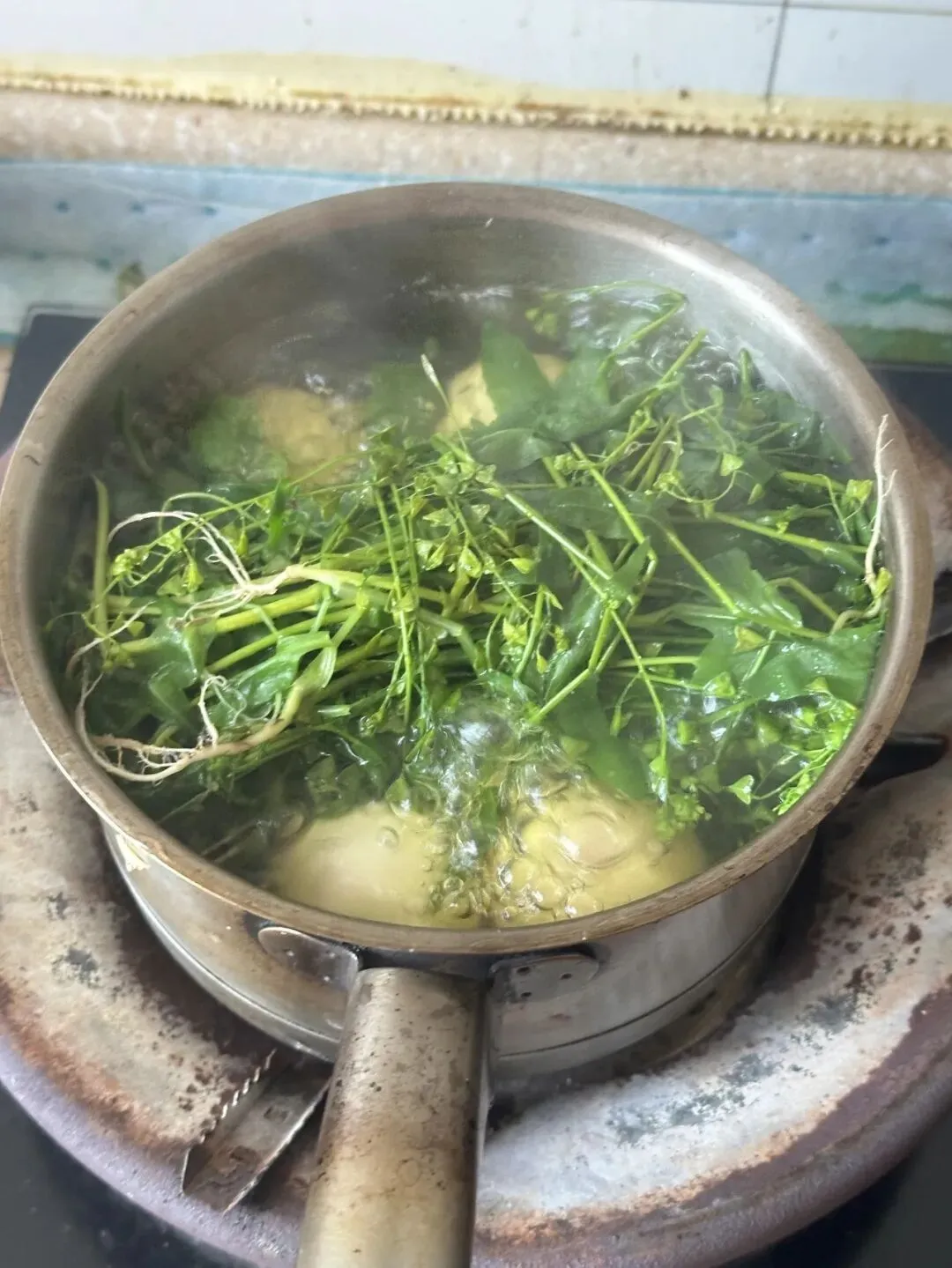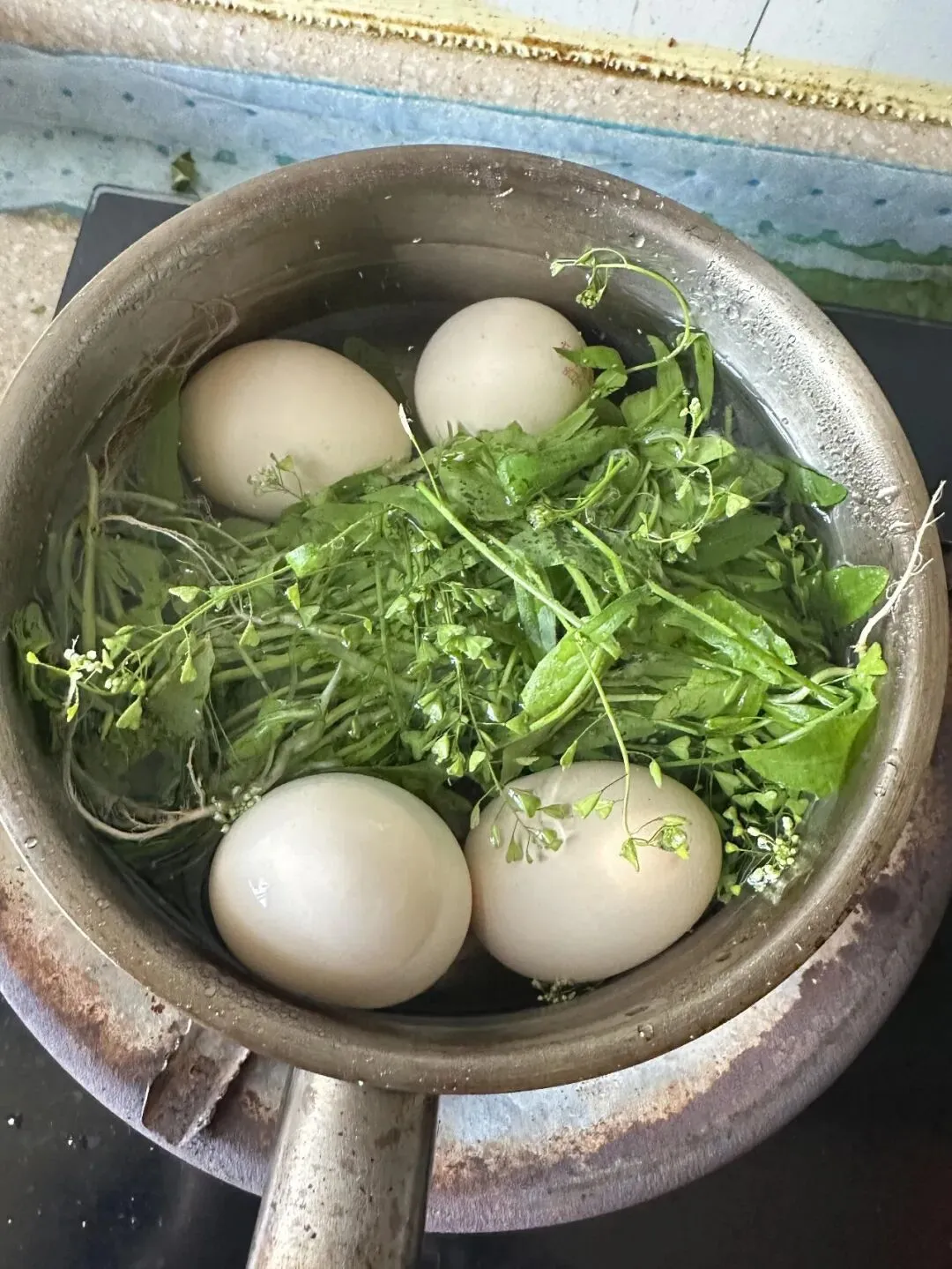 刚进门就看见他外婆蹲在厨房,把一捆带小白花的草往锅里塞,下面还铺了 4 个鸡蛋,我当时都懵了,说这是啥新吃法啊,草煮蛋能吃吗?