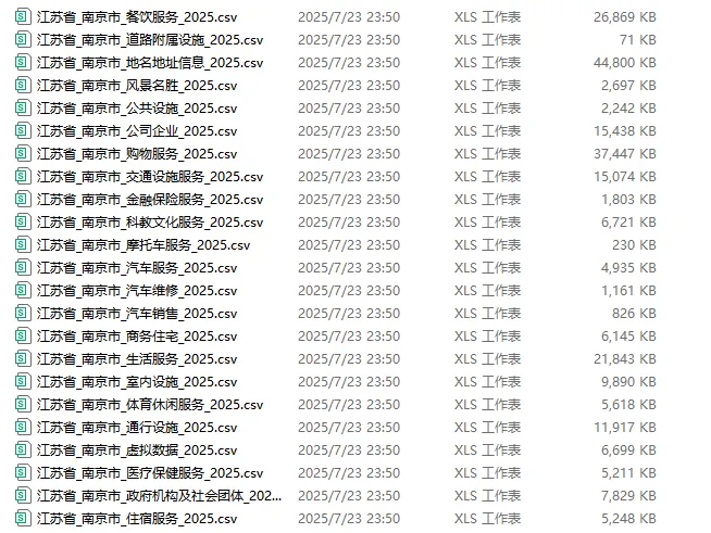 六朝古都藏古韵,长三角芯聚活力。南京的每一处POI(兴趣点),都是千年文脉与现代繁华的交融印记——从老门东的烟火市井到河西新城的科创楼宇,从中山陵的苍松翠柏到新街口的车水马龙,每一个点位都在诉说这座城市的多元魅力。本次我们依托2025年7月最新采集的高精准POI数据,拆解553,854条点位信息,全方位解锁南京的城市空间布局、产业发展脉络与民生服务图景。