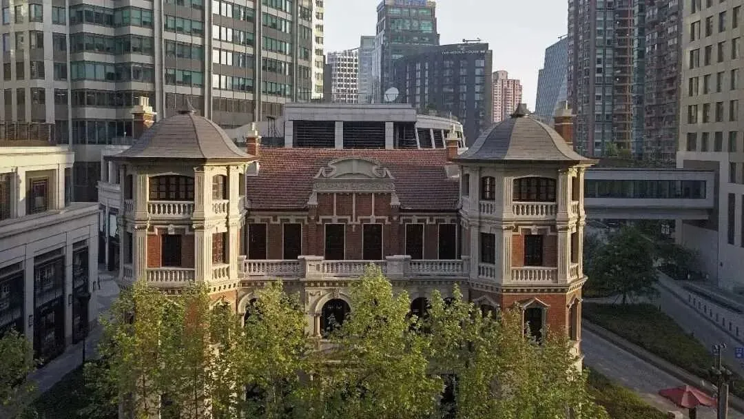 在南京西路繁华的玻璃幕墙与摩天楼群之间,兴业太古汇深处,藏着一栋红砖白柱的百年老洋房。它叫查公馆。