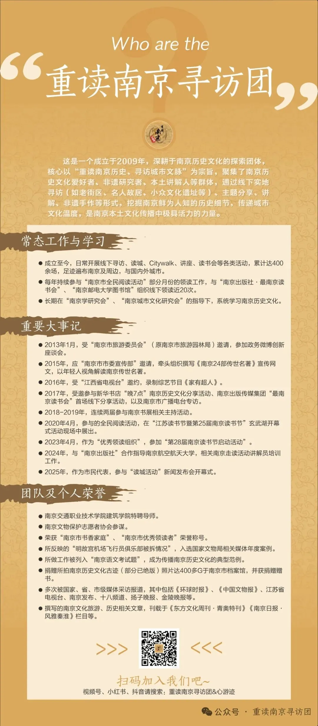 未来,作为 “南京读城活动” 官方推荐官团队 ——“重读南京寻访团”,也会组织更多轻松有趣的线下文化活动,让南京文脉在行走中延续,让传统文化焕发全新活力,敬请期待!