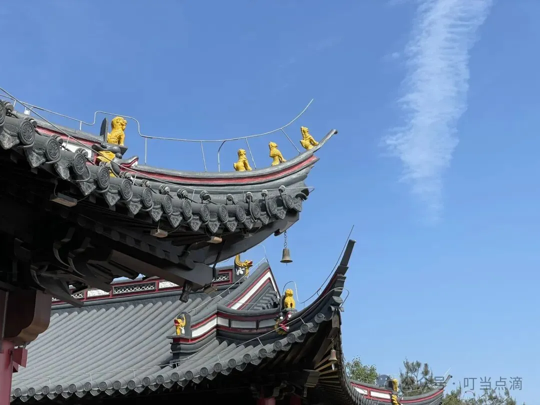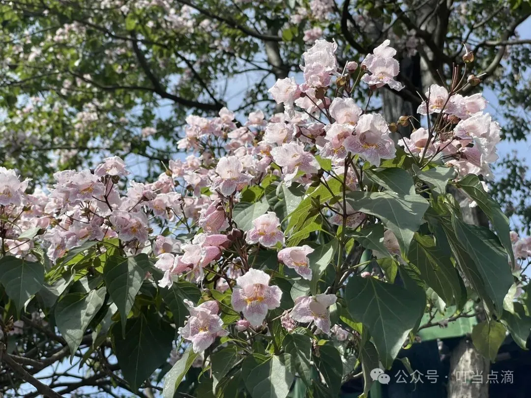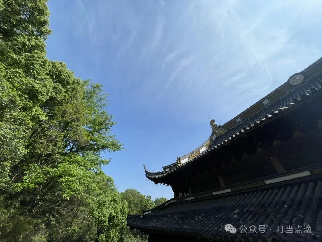 这座始建于南朝的千年古刹,因寺前两株古老的楸树而名动江南。今日恰逢花期鼎盛,花影与梵音交织,成全了一场诗意与禅意的邂逅。 未至山门,目光已被两团粉紫色的云霞攫住——那正是被誉为“江南第一楸”的古树。两树并肩而立,高者近20米,枝干虬劲如苍龙,低者稍敛锋芒,却以繁花织就垂天的锦绣。楸花形似小铃铛,淡紫色花瓣薄如蝉翼,簇成穗状缀满枝头,远望如“团团缀玉,点点攒星”,近观则见花蕊间蜂蝶翩跹,细嗅有清冷幽香沁入心脾。楸花盛开大约十日左右,一场雨后便会“满地紫花铺禅径”,当年老苏感慨“落英满地君方见,惆怅春光又一年”。好在现时即使远隔千里也可随时感知花开花谢,奔赴一场芳华之约。 转过刻有弘一大师手书“大愿成满,百福庄严”的照壁,进入禅寺。正中天王殿悬“最上一门”旧匾,左右钟鼓楼飞檐翘角,檐下铜铃随风轻响,与楸树梢头的鸟鸣遥相呼应。