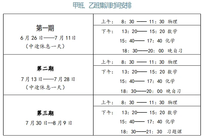 现将暑假三期课程安排如下: