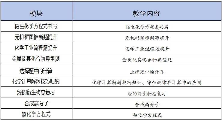 在已经学习了《必修一》和《必修二》基础上有针对性地进行提高、拔尖。初步培养学生高中化学竞赛能力。具体板块:未知方程式书写,工业流程,无机框图推断,有机化学,综合计算等九大课题: