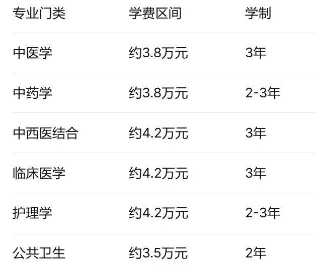 中西医结合、护理学等专业报考热度同样较高,学费在4.2万元左右