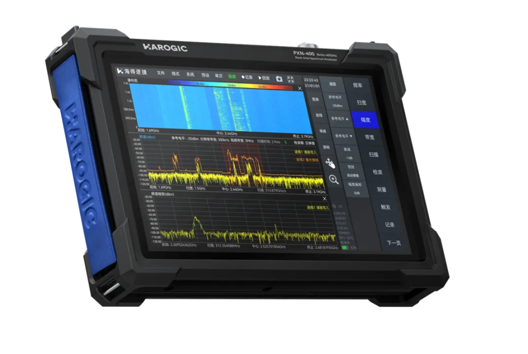 在保持高度小型化的前提下,我们追求尽可能高的性能指标。目前我们已经将实时频谱仪/接收机产品的频率涵盖范围提升至9 kHz至40 GHz;一些型号的DANL在20 GHz处低至-160 dBm/Hz,另一些型号则在1 GHz处低至-168 dBm/Hz;一些型号的相位噪声在1 GHz频率处低至-120 dBc/Hz于10 kHz频偏。大部分设备配备了高速频谱扫描能力,扫描速度可达100 GHz+/s甚至1.2 THs+/s,分析带宽达到100 MHz。海得逻捷射频仪器的性能指标正在取得持续并显著的改进。