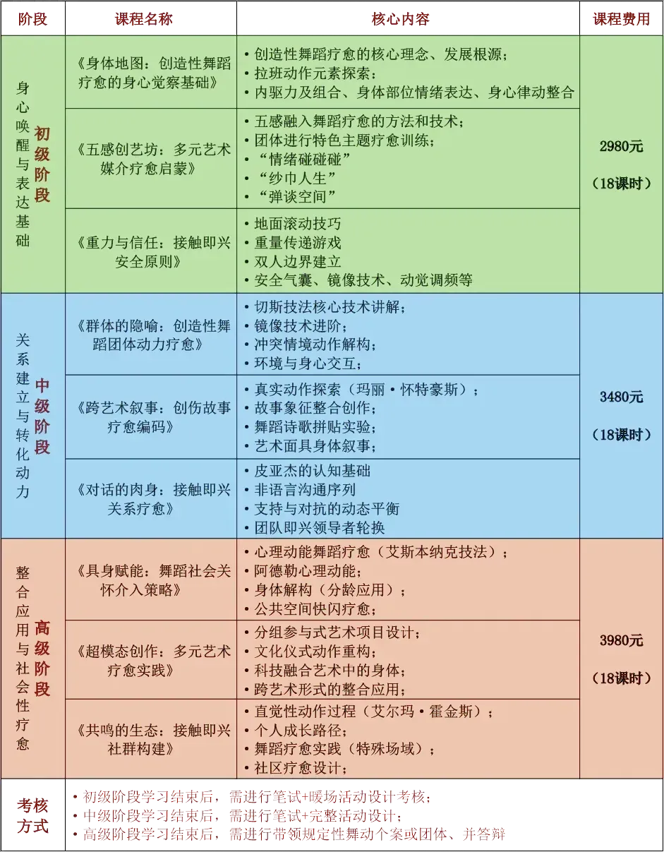 为期三天的培训内容丰富、成果显著,全体学员顺利完成全部课程学习,全面掌握舞蹈疗愈核心技法与教学逻辑,不仅实现了专业能力的提升,更完成了自我身心觉察与疗愈的进阶,收获了专业知识与心灵成长的双重成果。