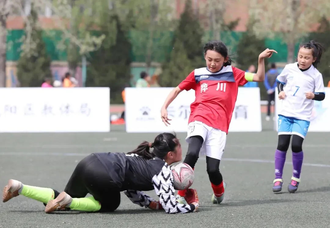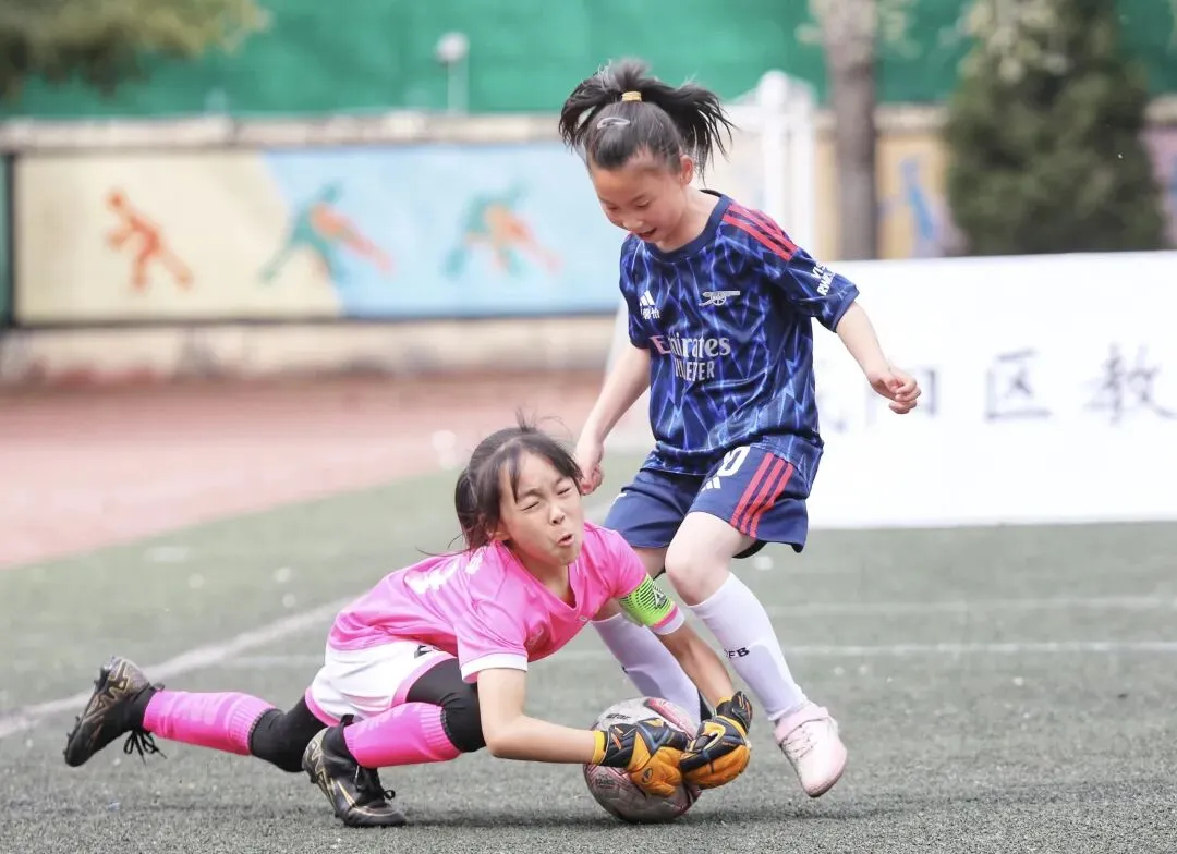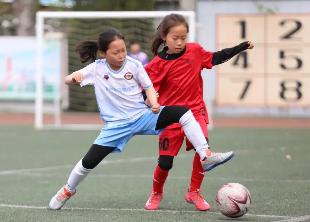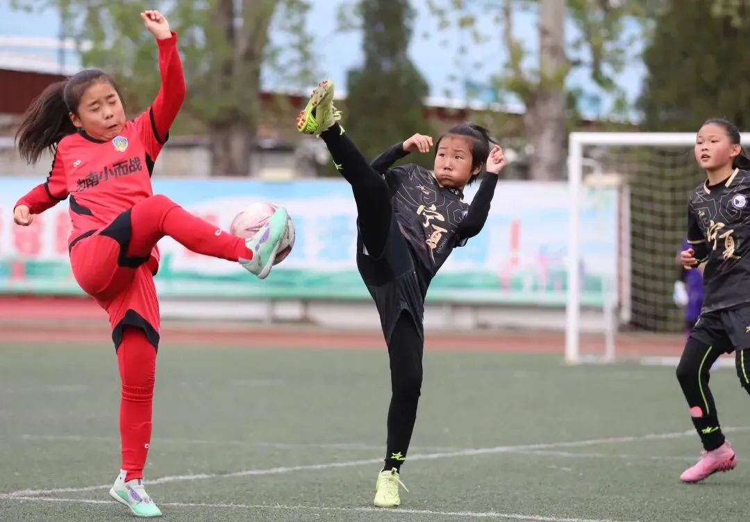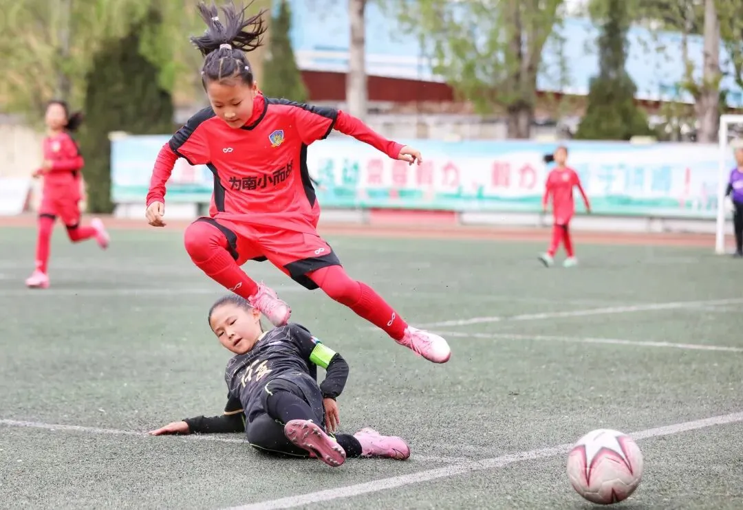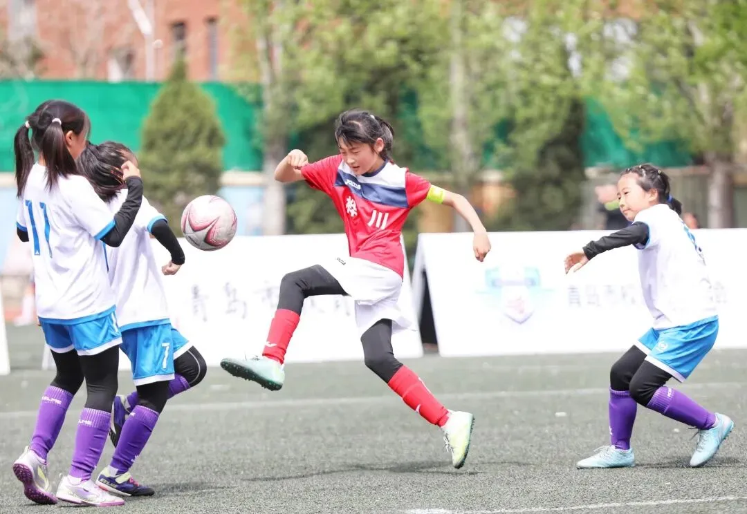 ▲青岛宁夏路小学女足与青岛南京路小学女足巅峰对决的精彩瞬间。青岛日报/观海新闻记者 韩星 摄