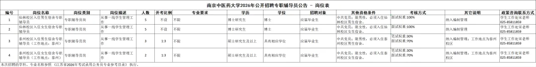 「江苏-南京」南京中医药大学2026年公开招聘专职辅导员公告