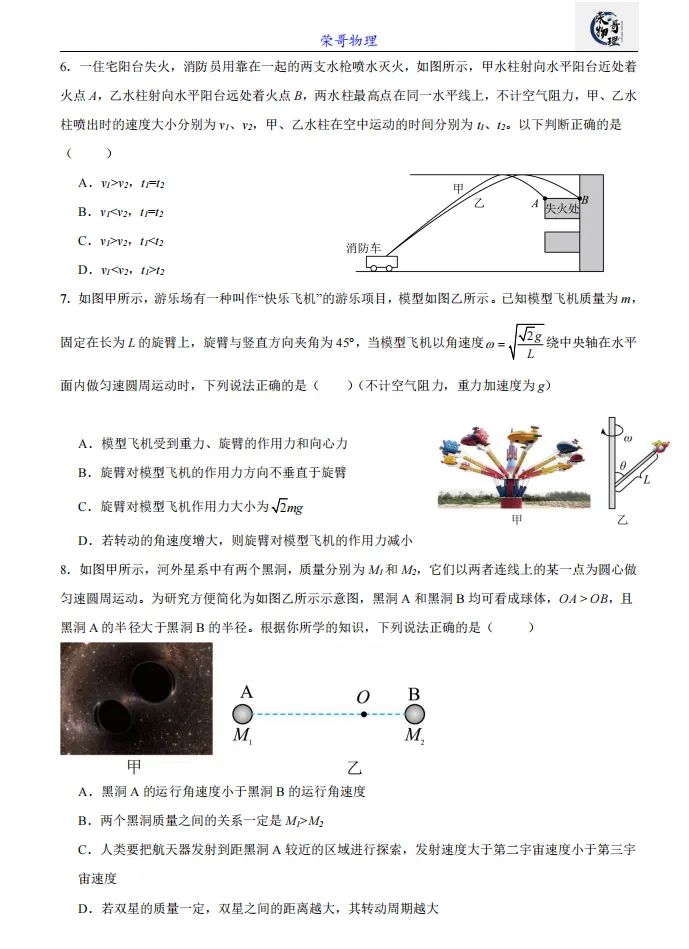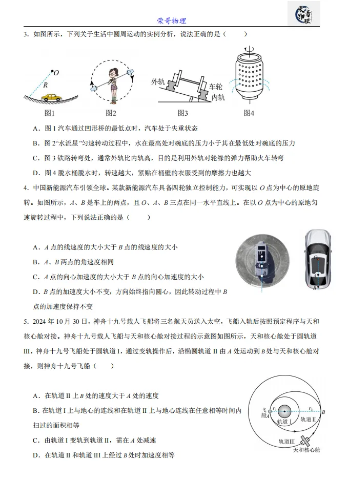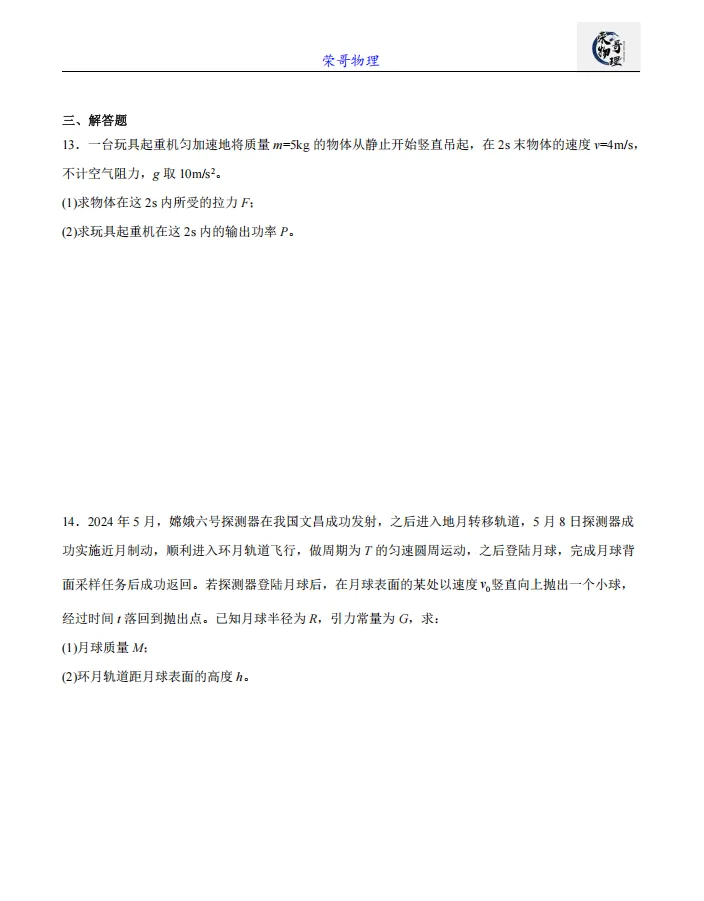 >高一月考||江苏省南京市六校联合体2024-2025学年高一下学期3月调研试题物理试卷
