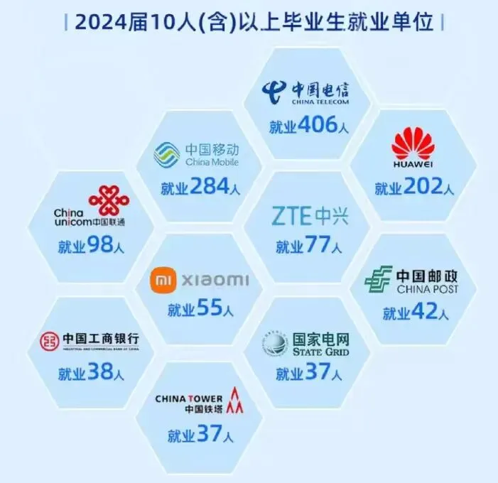 荣耀终端36人、浩鲸云计算27人、北京外企德科26人、思源电气22人、阿里巴巴21人、建设银行21人、美团20人、携程17人、卓胜微电子15人、海信集团13人、深信服13人、海康威视12人、南京银行12人、大华股份12人、江苏银行11人、新东方28人、南京邮电大学27人、奇瑞汽车26人、农业银行22人、中国电子科技集团21人、烽火通信20人、苏宁易购20人、中国银行16人、百度13人、亨通集团13人、招商银行13人、交通银行12人、天合光能12人、广东海悟科技11人