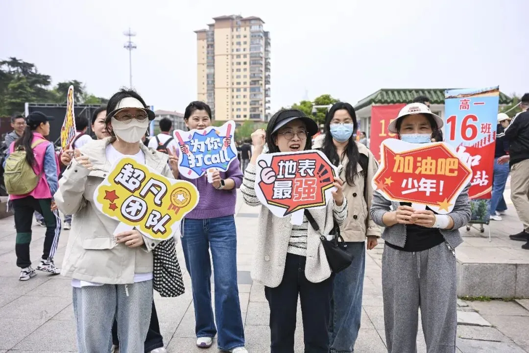 上午7点,城市刚刚苏醒,中华门城堡班旗飘扬,少年的脸庞青春勃发。各班制作了富有特色的口号牌,精神抖擞,整装待发,班主任和家长志愿者则在一旁加油助威。