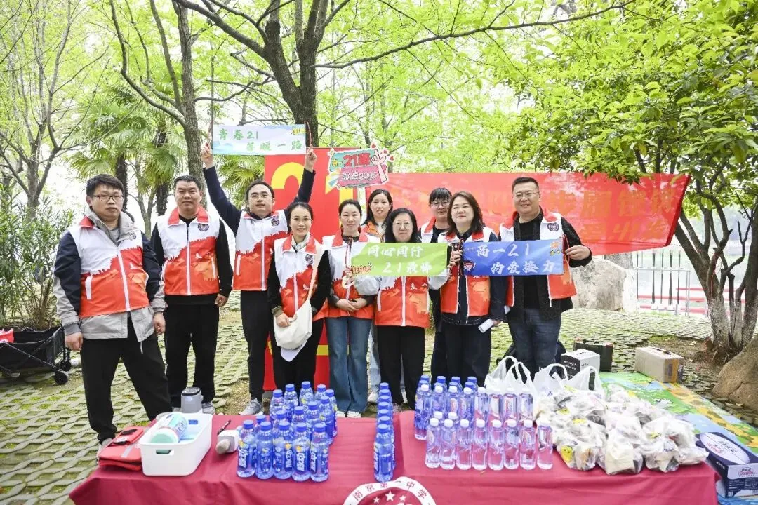 出于安全的考虑,老师们提前踩点了路线,在关键点位安排学生志愿者进行提醒。家长志愿者们也积极加入进来,在每一个休息站为孩子们补充能量,加油鼓劲。