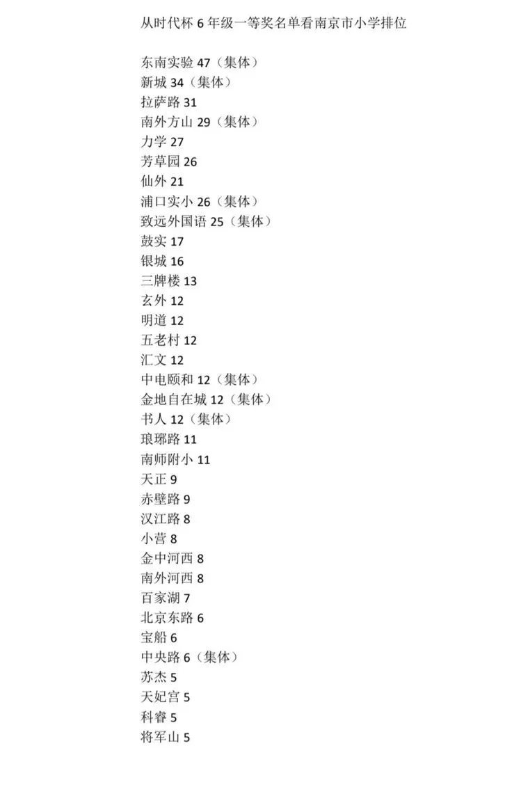 近日,网上流出了一张图片,从时代杯6年级一等奖获奖名单看南京小学排名,南京35所小学上榜,引发一批家长热议!