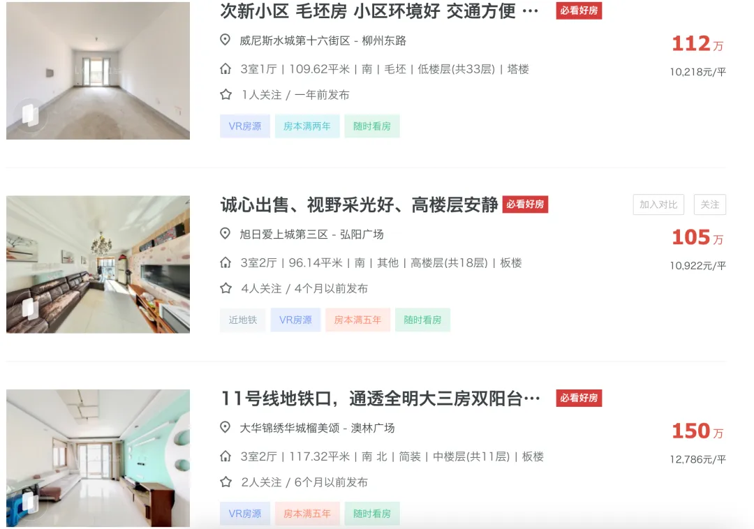 桥北、高新等区域,150万以内房源选择很多
