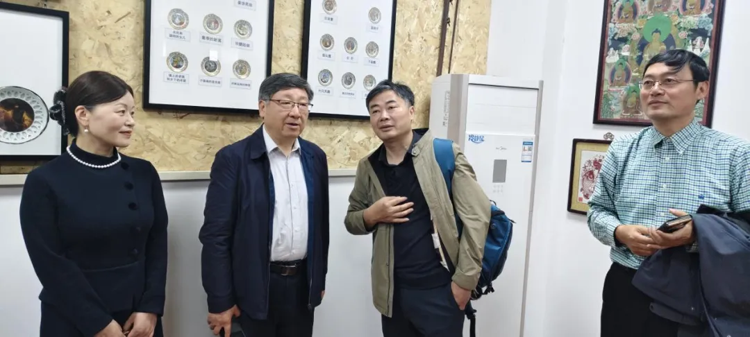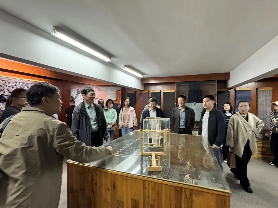 代表团首先参观了学校三大特色场馆:蓝印花布博物馆、民俗馆与美术馆。在蓝印花布博物馆,老师们近距离观察了传统蓝印花布的制作工艺,感受非物质文化遗产的独特魅力;民俗馆内陈列的江南传统农具与生活器物,让大家对地域文化有了更直观的认识;美术馆展出的学生艺术作品,则展现了华锐学子的创造力与审美素养。参观过程中,代表团成员不时驻足交流,对学校将传统文化与现代教育有机融合的做法给予高度评价。