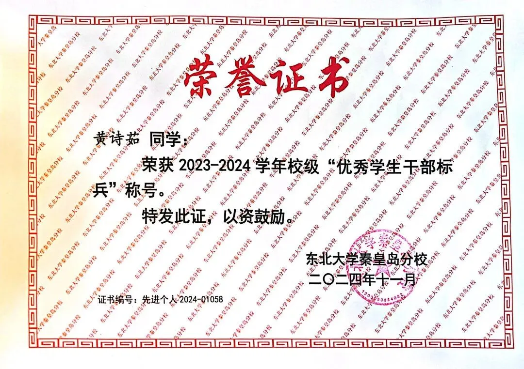 2024年度校优秀学生干部标兵