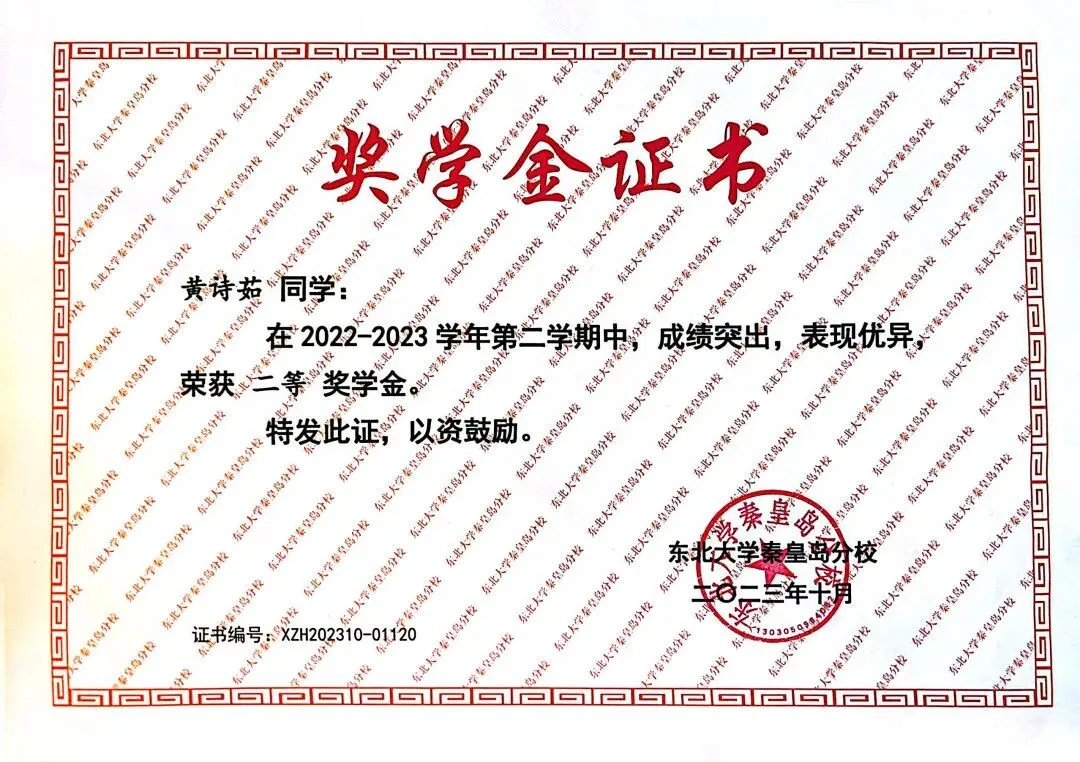 2022-2023学年校综合二等奖学金