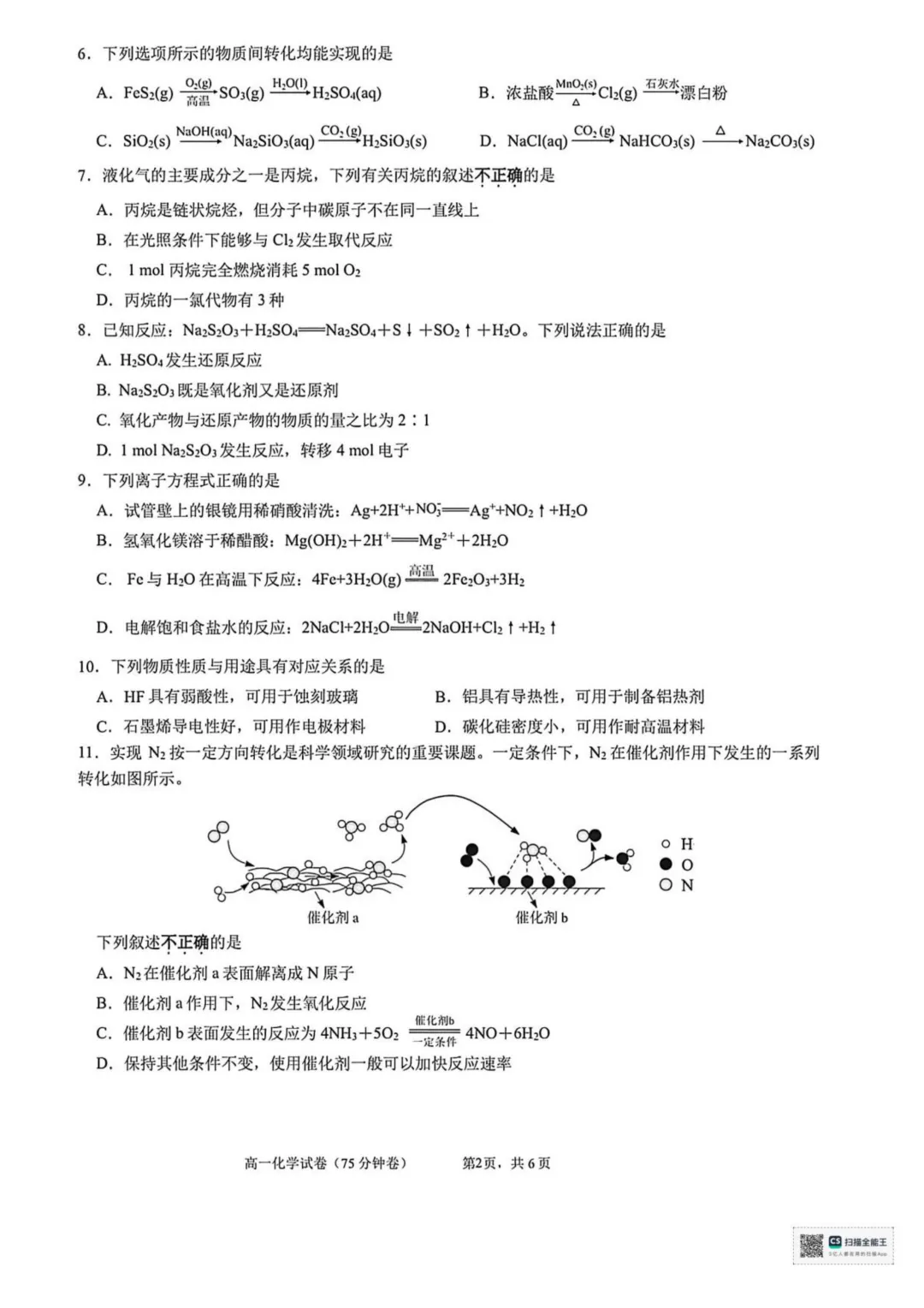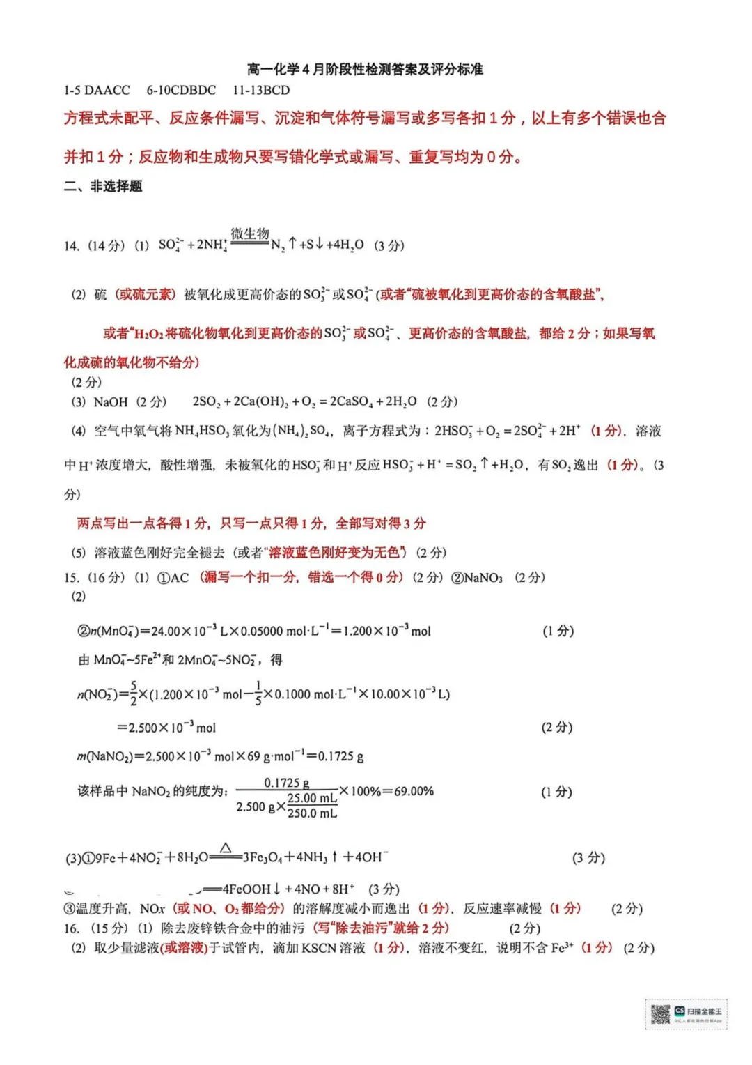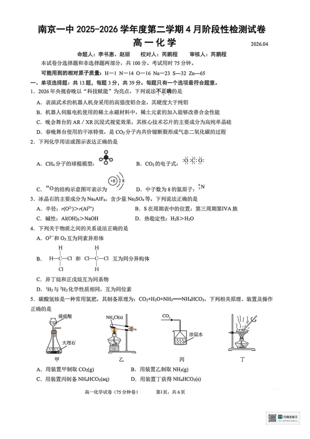 作者寄语:江苏南京一中2025-2026学年高一下学期4月阶段性测化学试题+答案,7天有效领取,手慢无!!!