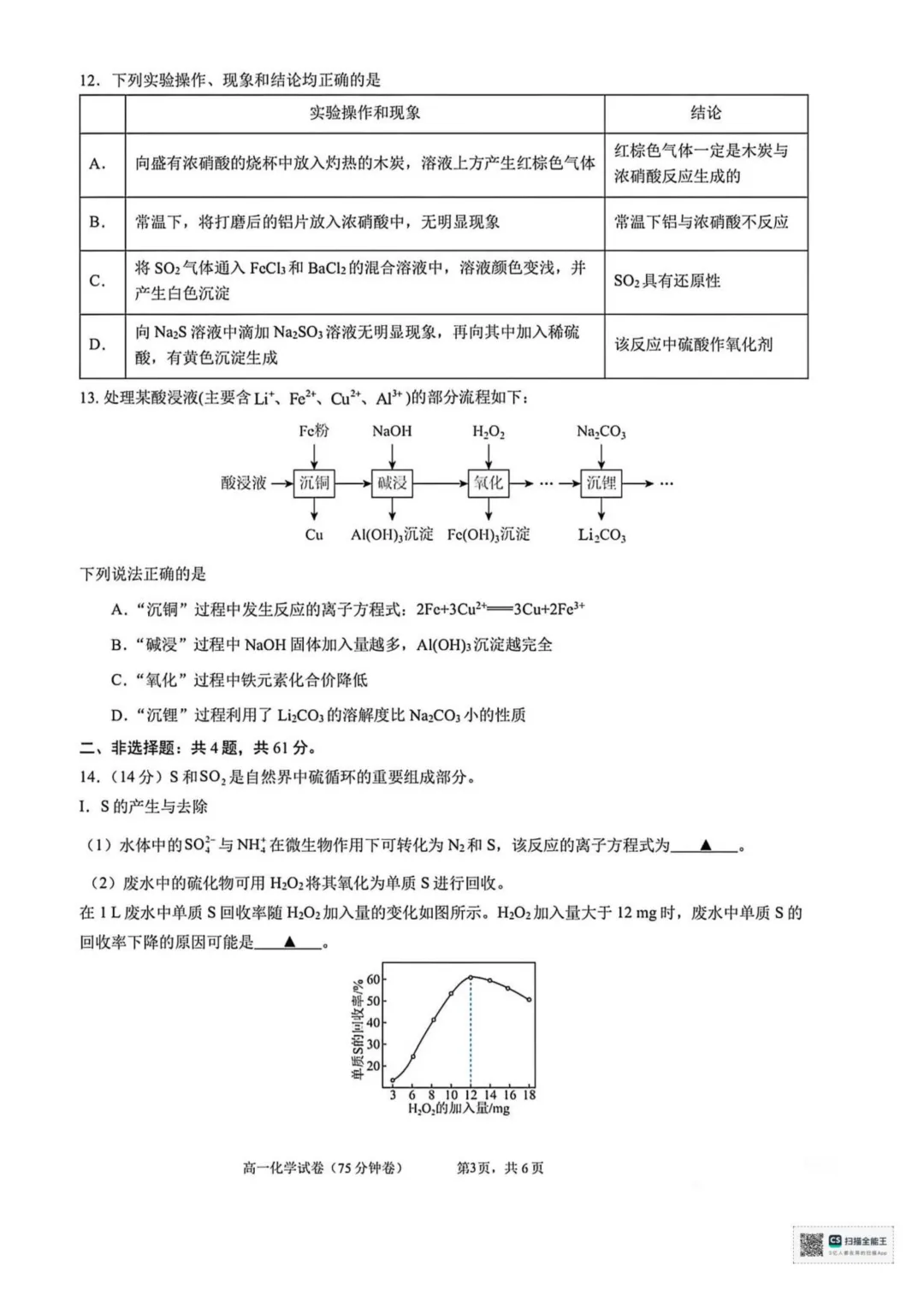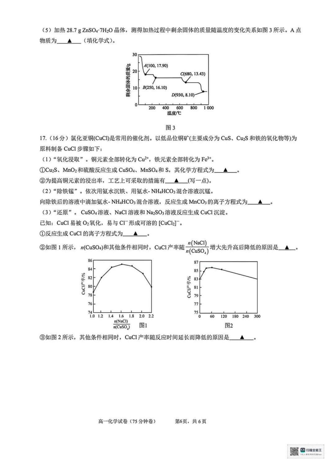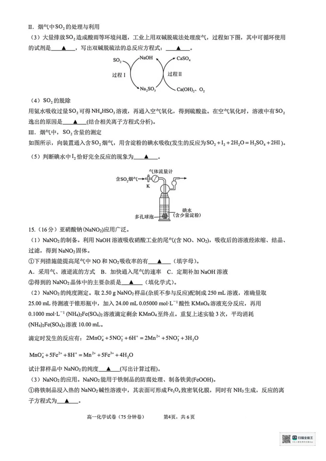 作者寄语:江苏南京一中2025-2026学年高一下学期4月阶段性测化学试题+答案,7天有效领取,手慢无!!!