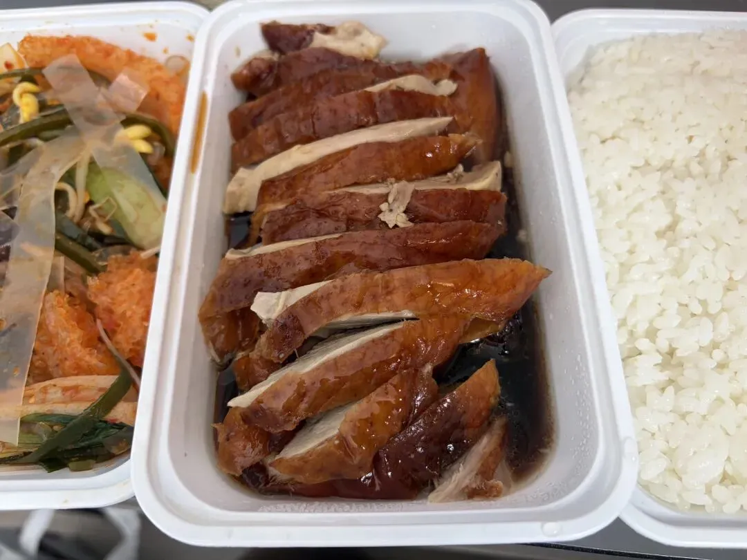 到了酒店,先点了烤鸭和茶颜悦色。都很不错。