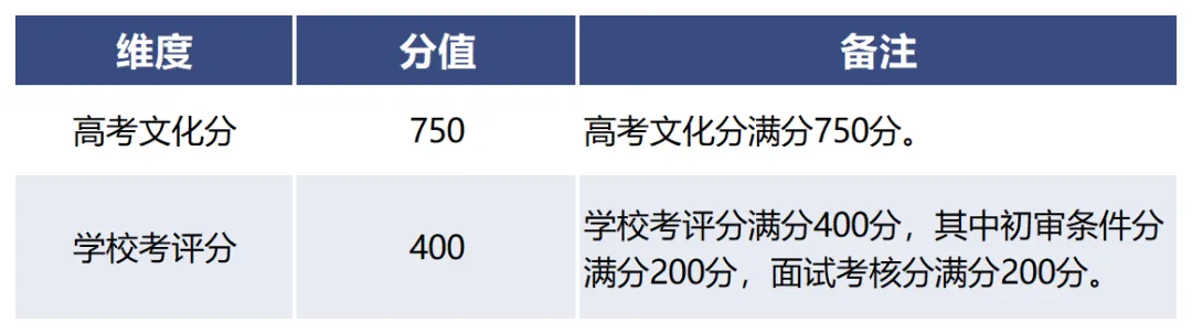 我校根据考生的高考文化分、学校考评分等维度进行多元加权综合评价,形成综合评价分,评价方法如下: