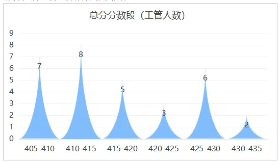 从录取分数段情况来看,全员都在405分以上,400+几乎是底线;425分以上的超高分也足足有8人,甚至有同学冲到了430分以上。这意味着,报考南大工管绝对不能有短板,各科都得拉满,初试分数容错率极低。