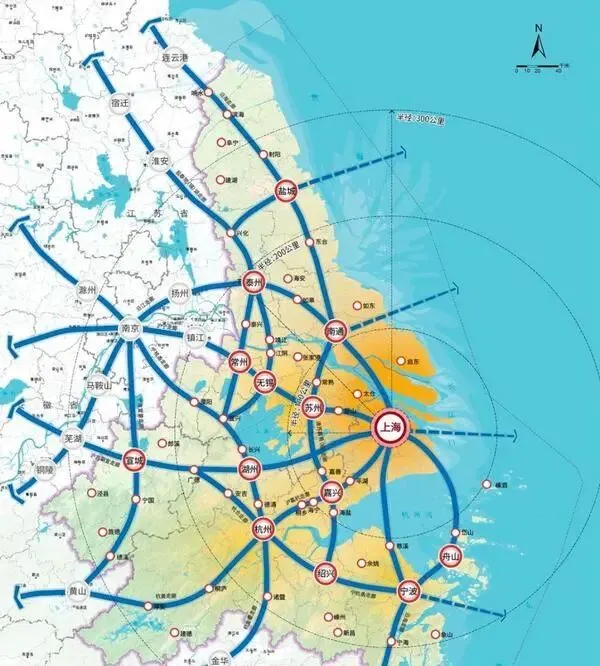 以前上海大都市圈是“1+8”的格局,总共9个城市,这次直接扩到了14个,新增了盐城、泰州、杭州、绍兴还有安徽的宣城。这么一扩,长三角近三分之一的区域都被圈了进来,江浙皖的不少核心城市,全都成了“圈里人”。