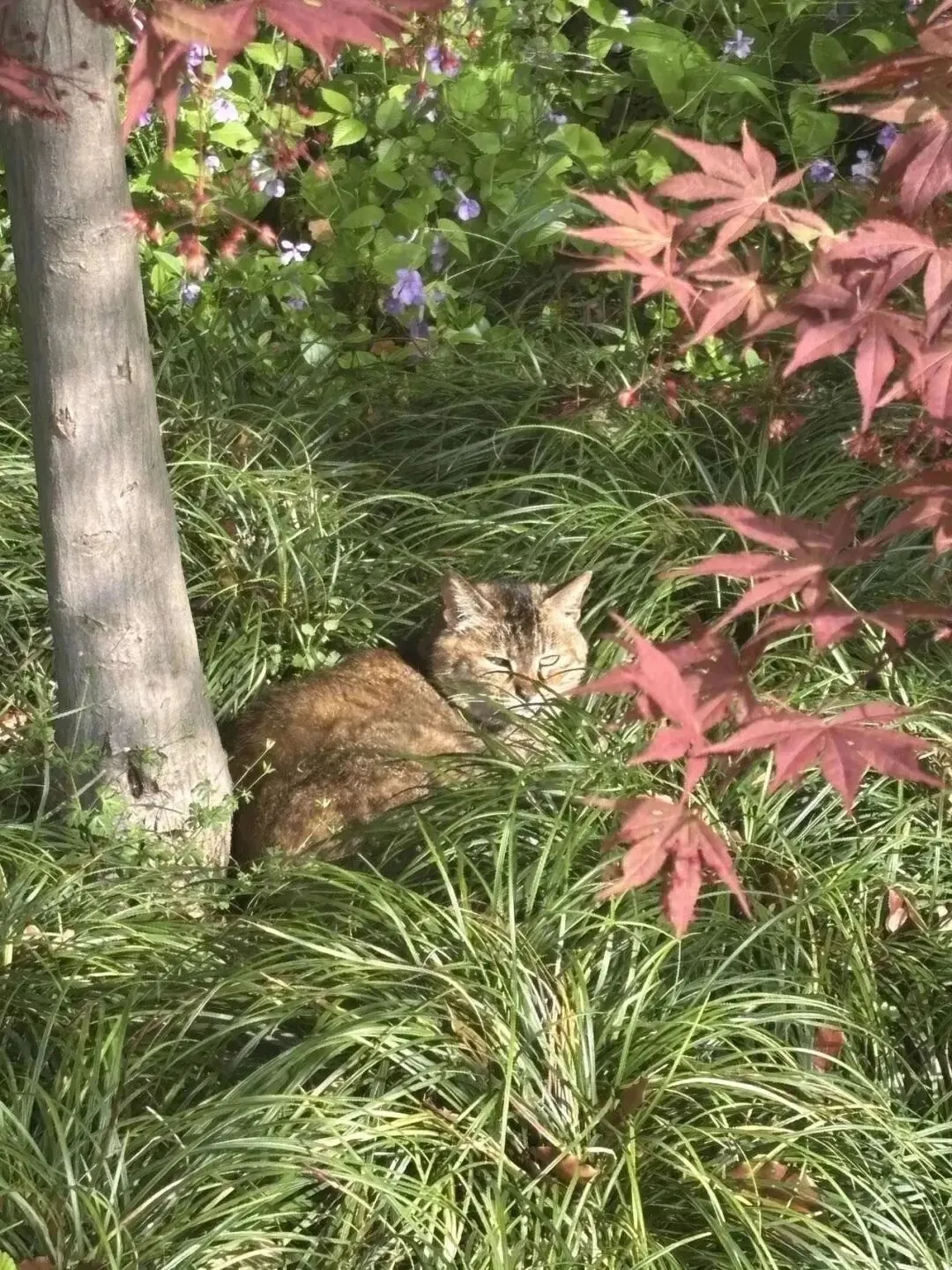 HCL:这次也许遇到了好多可爱的小猫。印象最深刻的?em可能是明孝陵的一只彩狸吧,它在我摸摸的时候爬到了我的身上◍˃ᵕ˂◍后面就一直躺在我怀里呼噜呼噜,身上干干净净暖乎乎的。阳光穿透树叶温暖洒下,好朋友们在身边聊天,那一刻,我好幸福߹ ߹