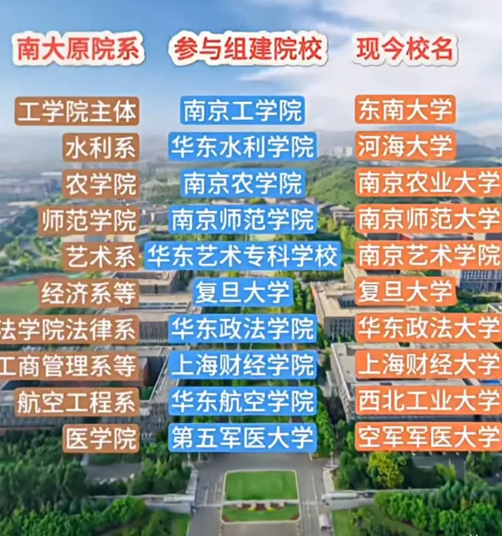 南京大学的水利系与交通大学、同济大学、浙江大学等校的水利系科共同组建了华东水利学院,即河海大学的前身