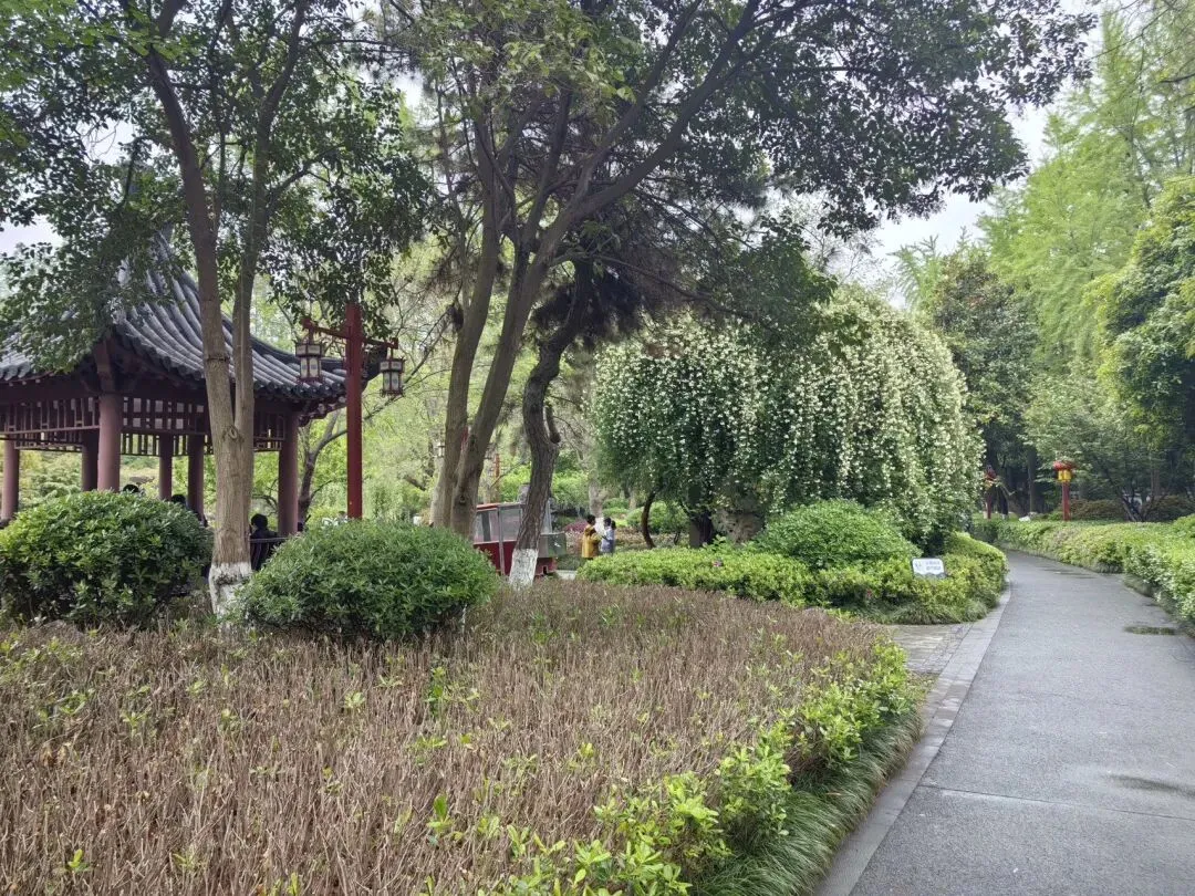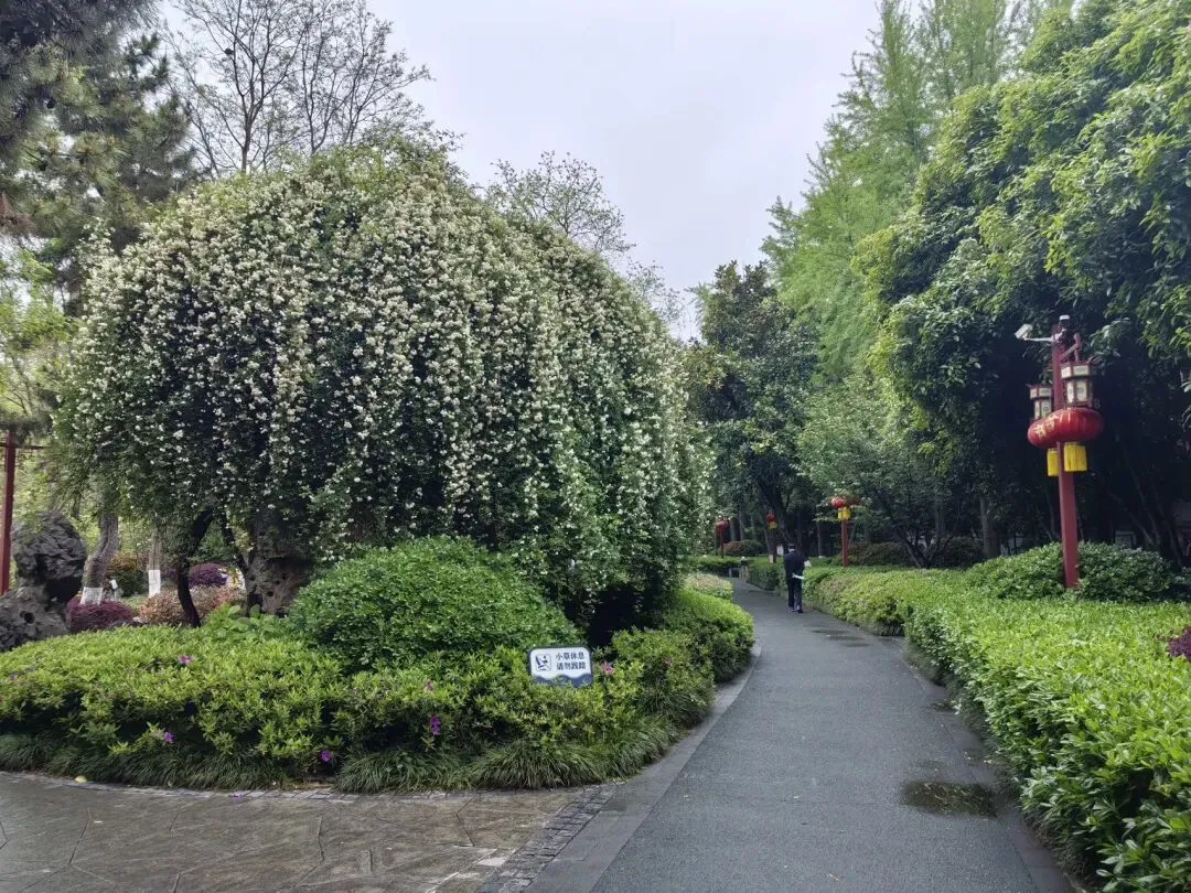 (因为在这儿看到了木香,三位男士对这些花不感兴趣,就没有再去碑亭巷,改去红庙买好吃的。)