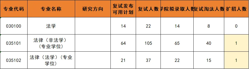 法律(法学)、法律(非法学)专业分别扩招1人,其他专业无扩招。