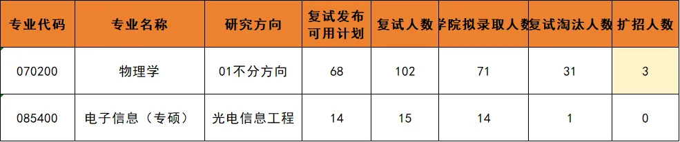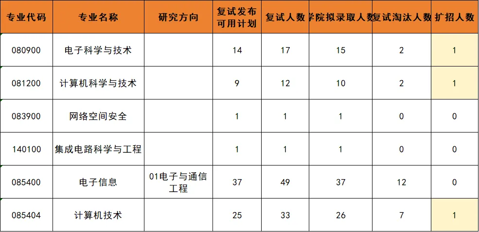 其中电子科学与技术、计算机科学与技术和计算机技术专业均有扩招1人,其他专业无扩招。