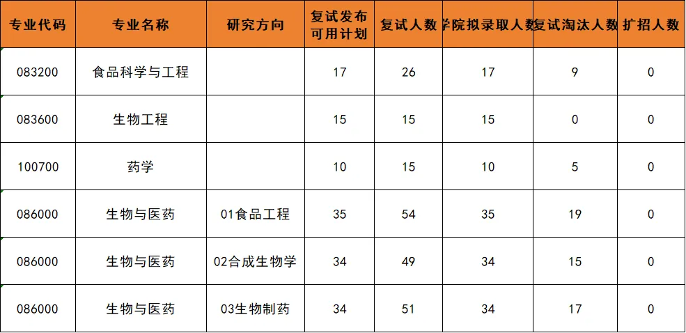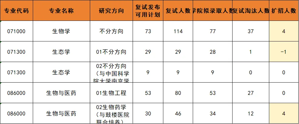 其中生物学专业扩招4人,生物与医药02方向扩招了4人,生态学01方向缩招了1人。