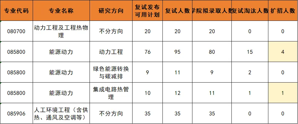 其中能源动力01方向扩招4人,能源动力03方向扩招1人,其他专业无扩招。