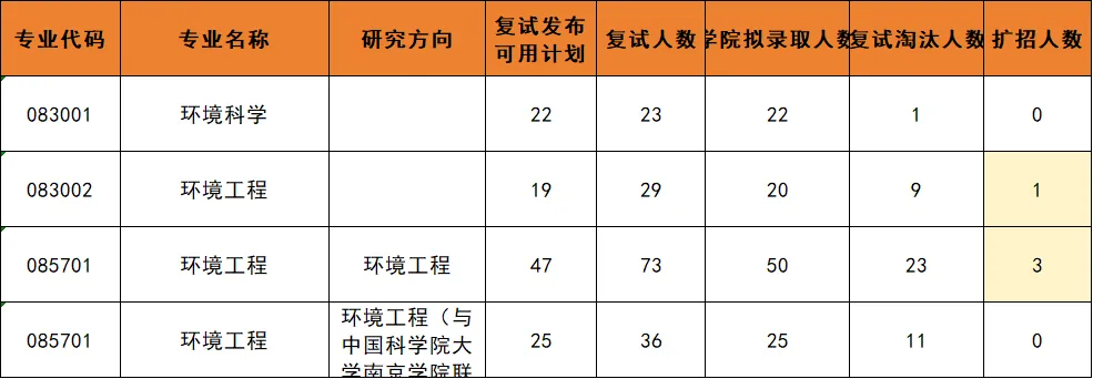 其中环境工程学硕专业扩招1人,环境工程(专业学位)01方向扩招3人,其他专业无扩招。