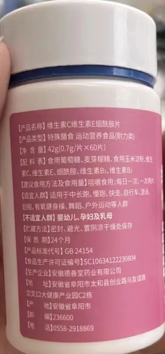 [配料表]食用葡萄糖、麦芽糊精、食用玉米淀粉、维生素C、维生素E、烟酰胺、维生素B1、维生素B2