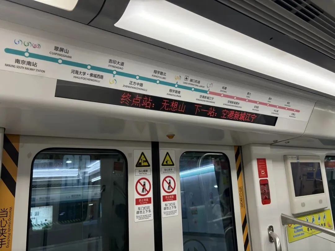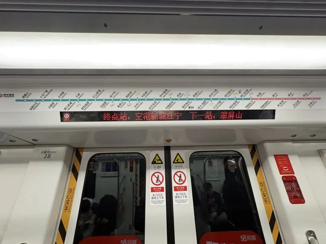 上图为三线贯通线路,将张贴于机场线T01-15列车(01+02-29+30),由于6号线车无法进入宁溧线区域,所有贯通车次均由机场线列车担任,原因个人猜测是因为6号线作为新建线路,车辆和信号系统完全按照ATO+增强型自动驾驶标准设计,而宁溧线的轨旁信号系统仅支持既有GOA2级、4节编组列车的运行逻辑,无法兼容6号线6节编组列车的ATO+控制指令、编组参数、停站对标逻辑,混跑兼容仅针对“机场线+6号线”,不包含宁溧线,轨旁软件升级,仅实现了机场线(6节编组)与6号线(6节编组)的ATO+列车混跑,以及机场线(6节)与宁溧线(4节)的既有模式混跑,但未设计6号线(6节)与宁溧线(4节)的混跑逻辑。在6号线列车进入宁溧线后,轨旁系统无法识别其编组参数、ATO+模式,会出现对标不准、站台门联动失效、追踪安全风险等问题。禄口机场交路开行时间均为高峰期结束之后,大部分由万寿折返的小交路列车运行至禄口机场站折返换端,空放运行至翔宇路南站经转换轨2返回禄口新城南基地,6号线机场线与宁溧线共四张运行图,在周五、节假日及运能紧张时段将取消禄口机场站折返。由于此次跑图存在部分特殊性,不便对外公开,在跑图期间,南京南站至夹岗区间不允许任何人乘坐,包括员工在内,夹岗下行及南京南站上行必须严格落实清客。机场线剩余车辆将尽快完成改造,所有跑马灯及“港铁蜂鸣”和“升调版LOGO提示音”将会全部绝版,同时新的系统里修改了南京南站的英文,取代原先的south,与国铁统一,下面是piis强制将栖霞山定义为“南京南”,如果是开往万寿,则为“南 京 南”本轮贯通跑图期间,平峰期行车间隔为6分钟,高峰期4分钟,在跑图结束后,将回归超长大间隔,出车数将大大减少,6号线和机场线司机也将再次分别前往对方线路跟车学习。6号线所有列车张贴的线路图,原先有宁溧线的也将更换为此版本,不得不说6号线这一次制作的线路图和通长真的是毛病多多,不是漏了宁高线就是漏了5号线…