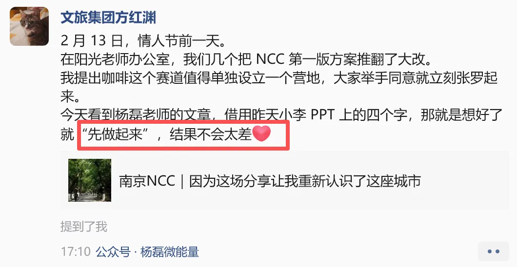 在看这篇文章前,我想请大家看一下杨磊老师的这篇《南京NCC|因为这场分享让我重新认识了这座城市》。