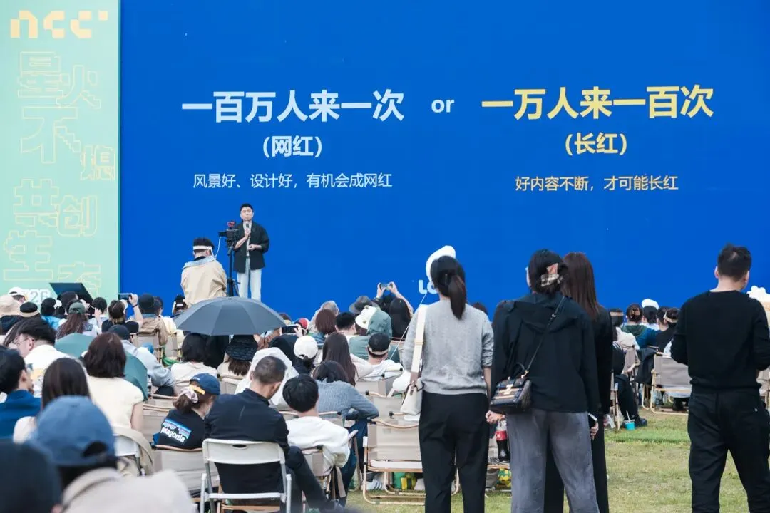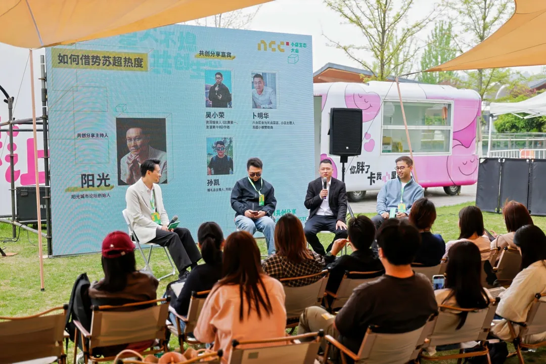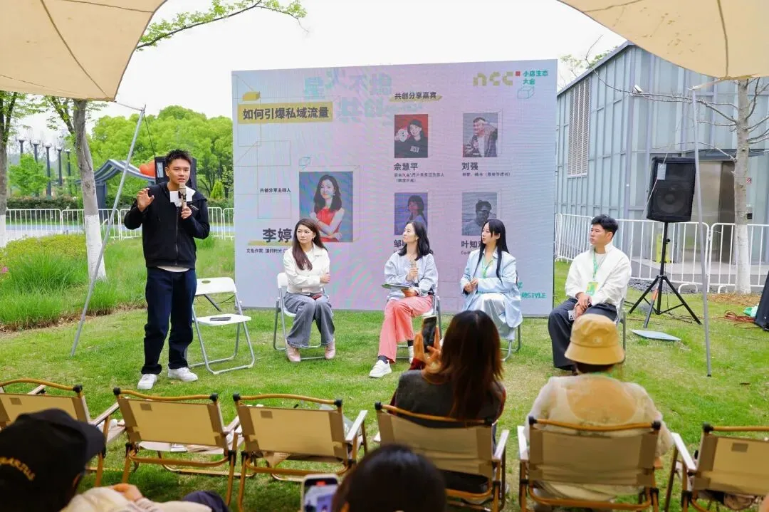 NCC小店生态大会有一个细节很打动人:场地没有设置传统的讲台和座椅,而是用草坪和露营椅替代;没有枯燥的PPT汇报,而是“掏心窝子讲真东西”;没有单向的输出,而是围坐在一起畅聊。