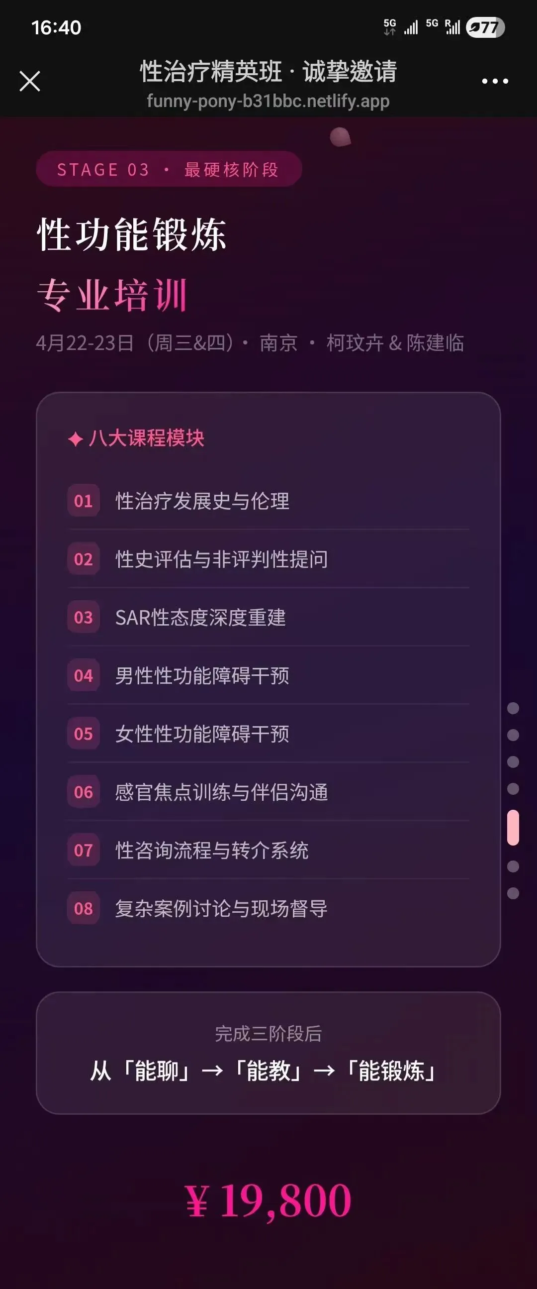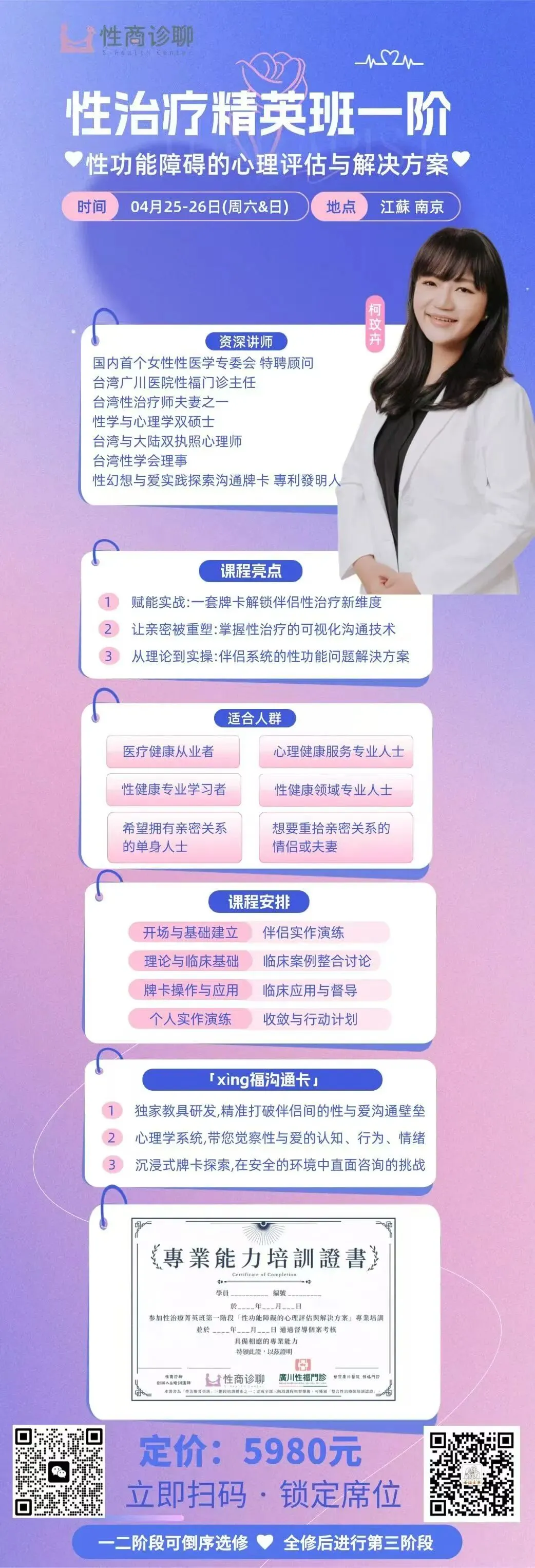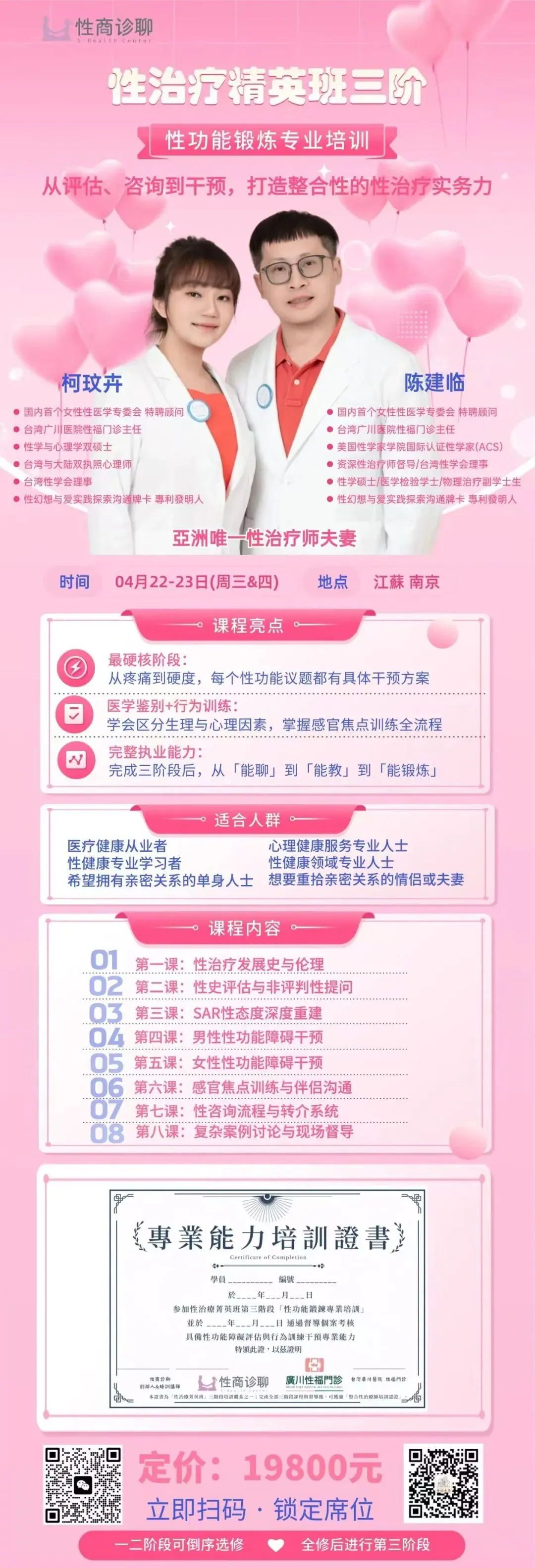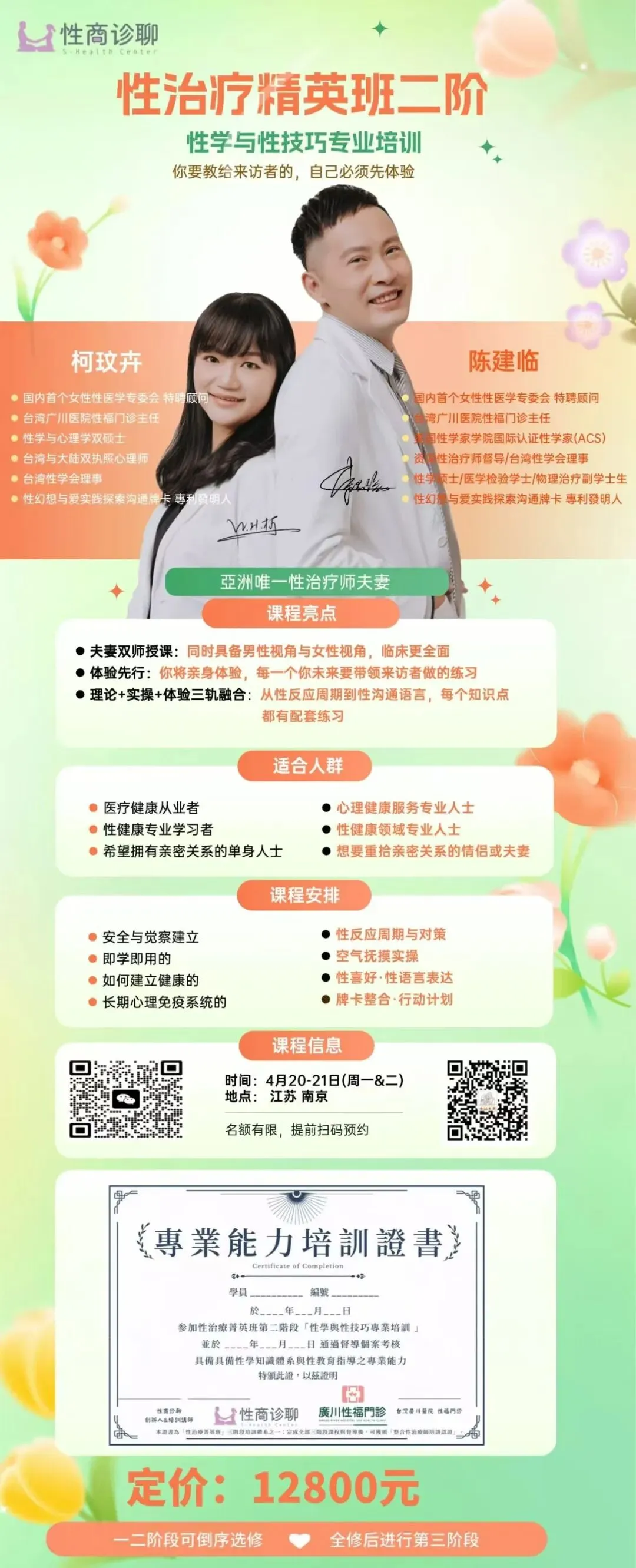 南京:性治疗精英班1-3阶密集培训(4月21-26日)-亚洲唯一的性治疗夫妻十余年临床经验倾囊相授