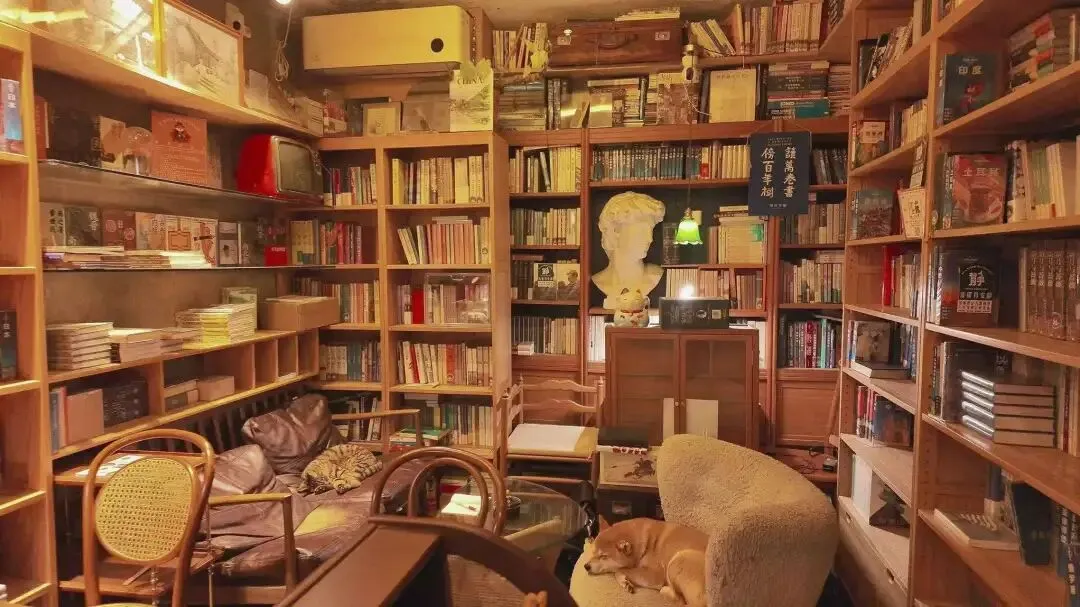 是一家开在大学里的书店,周围都是居民楼,看起来好像也是店主自己住的地方。