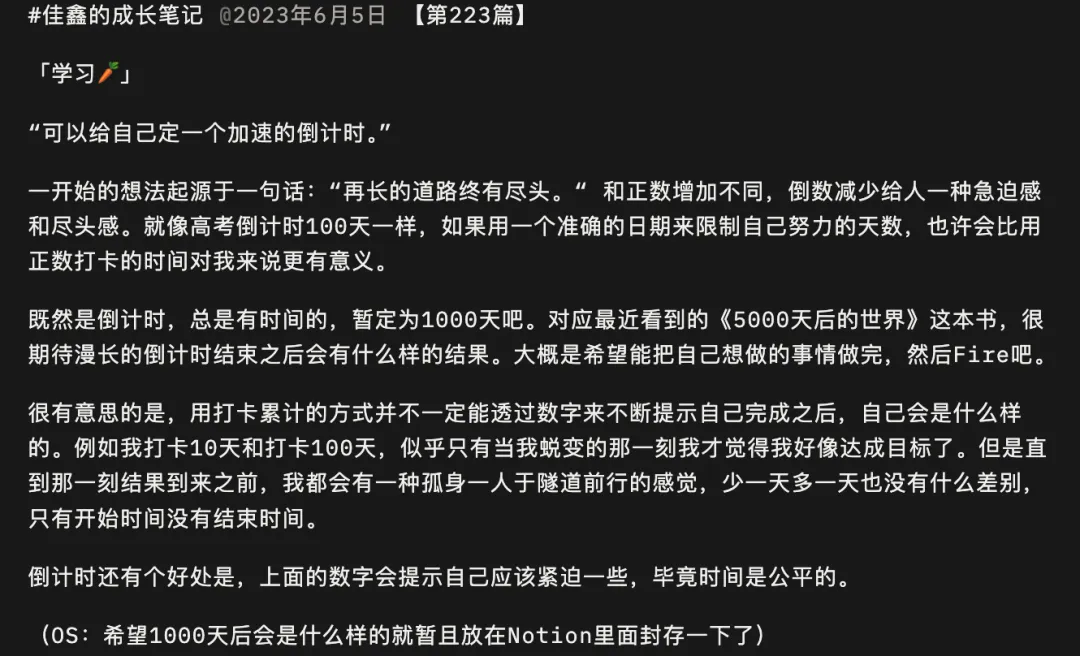 比如我在2023年给自己定下1000天后裸辞,实际上在第二年就完成了。(还发pyq了)