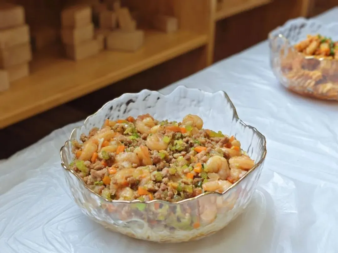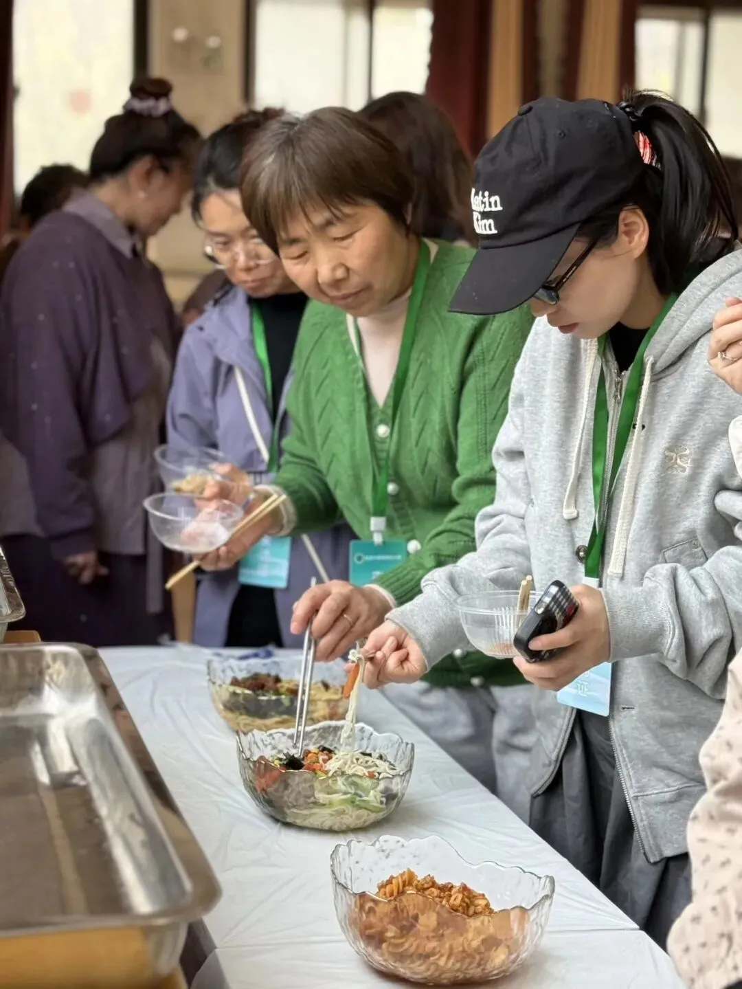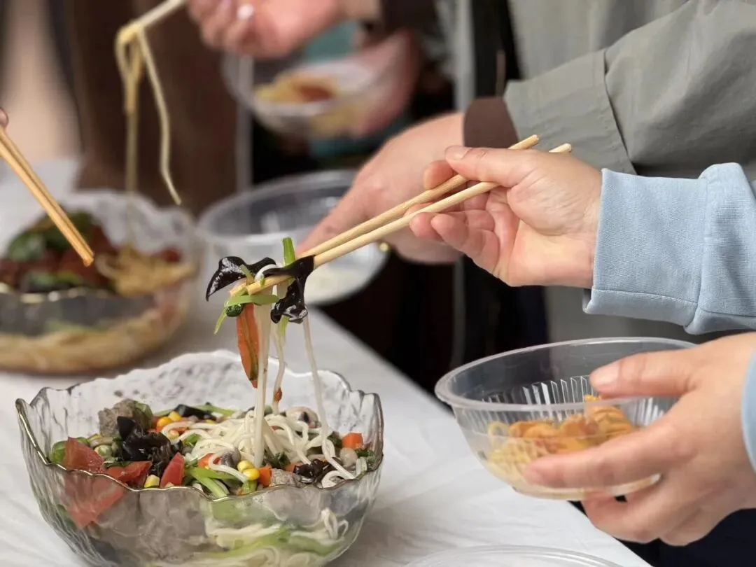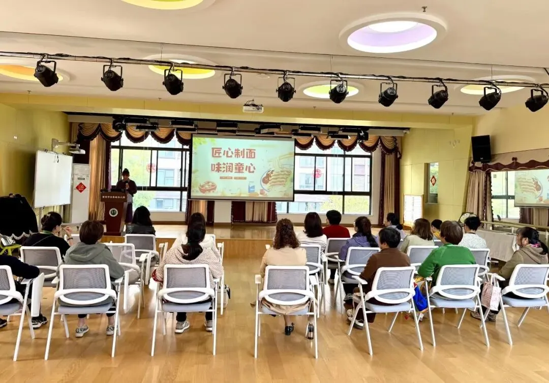 为进一步加强家园沟通,保障幼儿饮食健康,提升膳食服务质量,2026年4月10日,南京市青秀城幼儿园开展了以“匠心制面 味润童心”为主题的膳食委员会活动。各班家委会代表受邀走进幼儿园,近距离了解幼儿膳食管理,沉浸式体验孩子们的日常餐食。