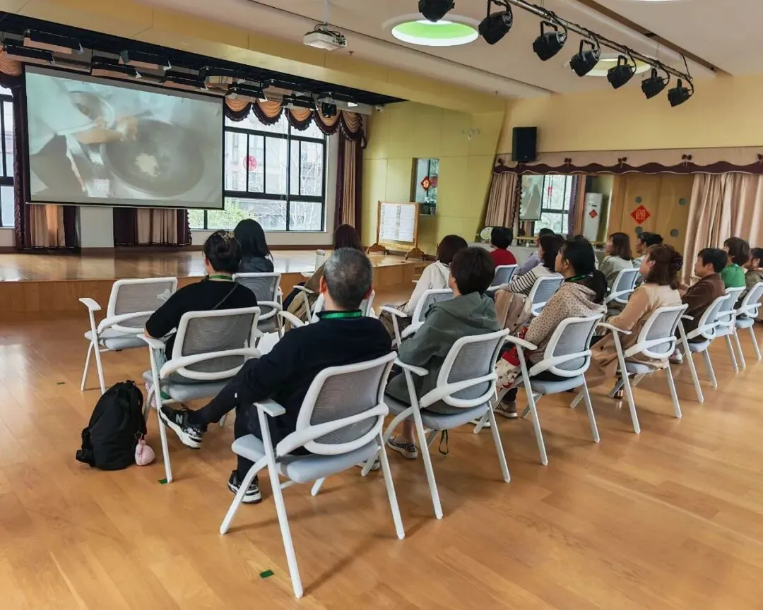 活动伊始,保健张老师向家长们详细介绍了幼儿园膳食工作理念、后厨人员配置及食品安全规范。我园厨房工作人员均持证上岗,严格遵循食品安全操作流程,从食材采购、清洗切配到烹饪调味,每一环都精益求精,全力守护幼儿“舌尖上的安全”。