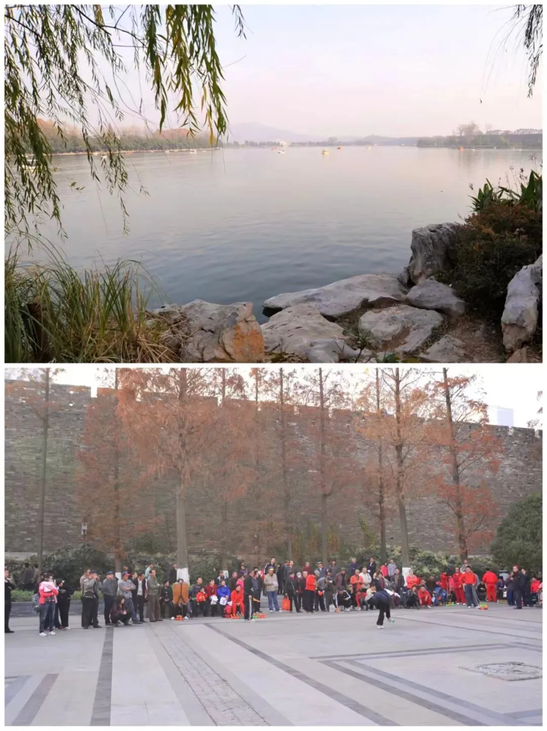 玄武湖,已有1500多年历史,曾经是皇家园林。如今的玄武湖公园,是南京市民的“城市客厅”。我们选择了有城墙的一段环湖路漫步。