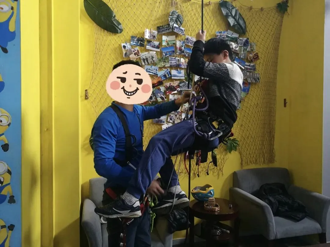 先带我们去南京某个户外俱乐部体验攀树技术,怎样扣绳索,怎样拉放绳索,孩子学得有模有样,恨不得能立刻找到一棵大树实战演练。
